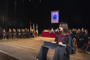 Luego de eso, los graduados realizaron la jura ante el Vicerrector de Investigaciones: Dr. Domingo Tarzia, quien dirigió la ceremonia. Acto seguido, los mismos subieron al escenario para recibir su diploma y birrete, donde también se hizo entrega de reconocimientos a aquellos alumnos distinguidos por su promedio académico. Hubo un momento donde 2 oradores, en representación de los alumnos de grado y posgrado respectivamente, brindaron un discurso de cierre y finalmente, tuvo lugar el homenaje del Cuarteto de Cuerdas Rosario: «Sonidos Distantes». Recordamos las palabras del Vicerrector de Investigación Domingo Tarzia durante el cierre de la ceremonia: