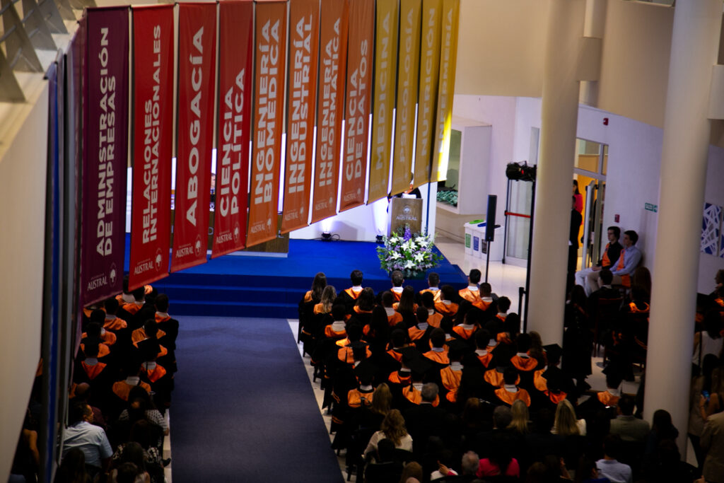 Vestidos con sus togas iluminadas por el color naranja que identifica a la Facultad de Ingeniería, los flamantes graduados subieron al estrado a recibir sus diplomas, acompañados de sus familias y amigos. Luego de la ceremonia, re realizó un brindis en el campus de la Universidad Austral.