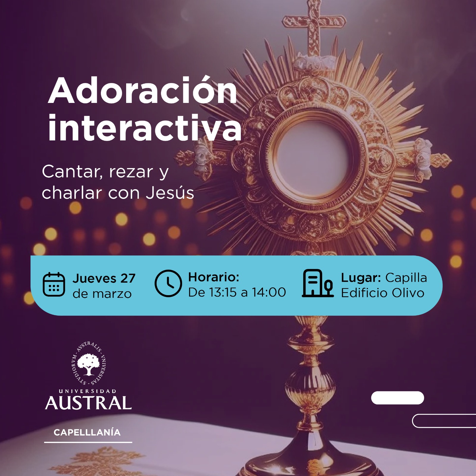 Los invitamos a participar de la Adoración Eucarística, que se llevará a cabo en la Capilla del Edificio Olivo el jueves 27 de marzo, de 13:15 a 14:00 horas.