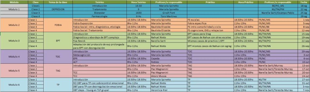 La diplomatura se divide en seis módulos, cada uno con una duración de 22 horas, incluyendo contenidos teóricos y prácticos. Cada módulo abordará un trastorno específico, detallando diagnóstico, diseño de estrategias, desarrollo del tratamiento, implementación de técnicas, novedades en el tratamiento y supervisión de casos clínicos.