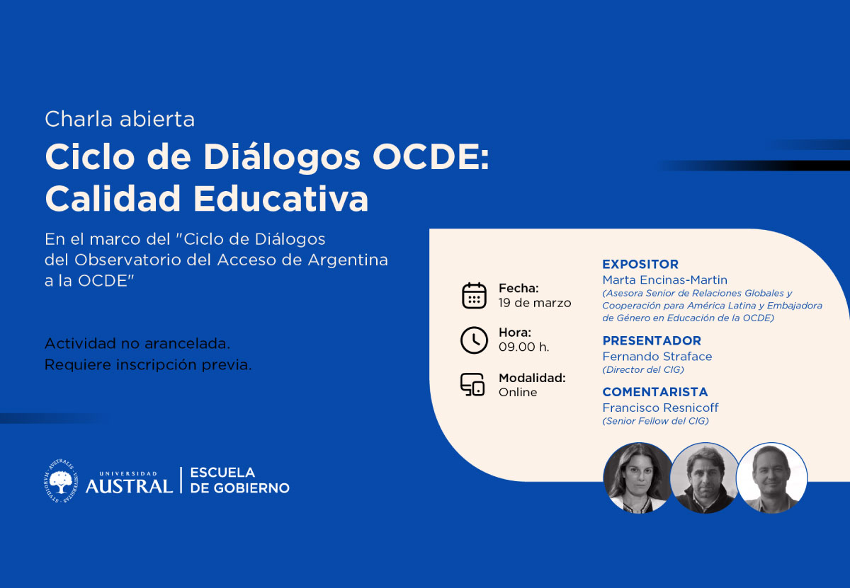 El Observatorio del Proceso de Acceso de Argentina a la OCDE de la Universidad Austral invita a participar de la segunda charla del Ciclo de Diálogos 2025, dedicada a la calidad educativa y el desarrollo de competencias para fomentar un crecimiento inclusivo en América Latina.