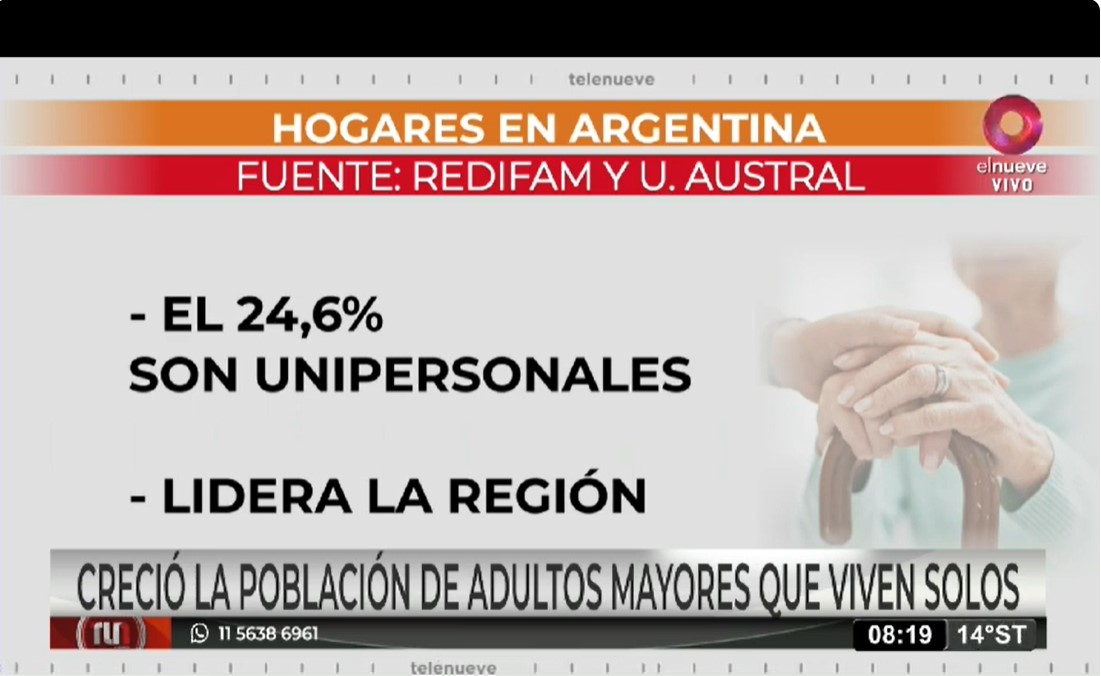 El noticiero "Telenueve al amanecer" de Canal 9 difundió un informe del Instituto de Ciencias para la Familia de la Universidad Austral, que analiza el envejecimiento poblacional en Argentina.