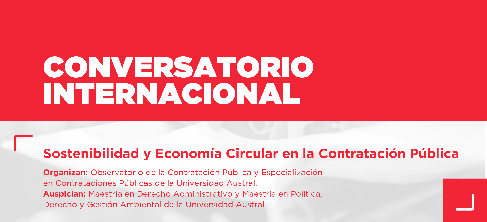 La Facultad de Derecho de la Universidad Austral, el Observatorio de la Contratación Pública y la Especialización en Contrataciones Públicas, organizan, con los auspicios de la Maestría en Derecho Administrativo y la Maestría en Política, Derecho y Gestión Ambiental, el Conversatorio internacional: Sostenibilidad y Economía Circular en la Contratación Pública