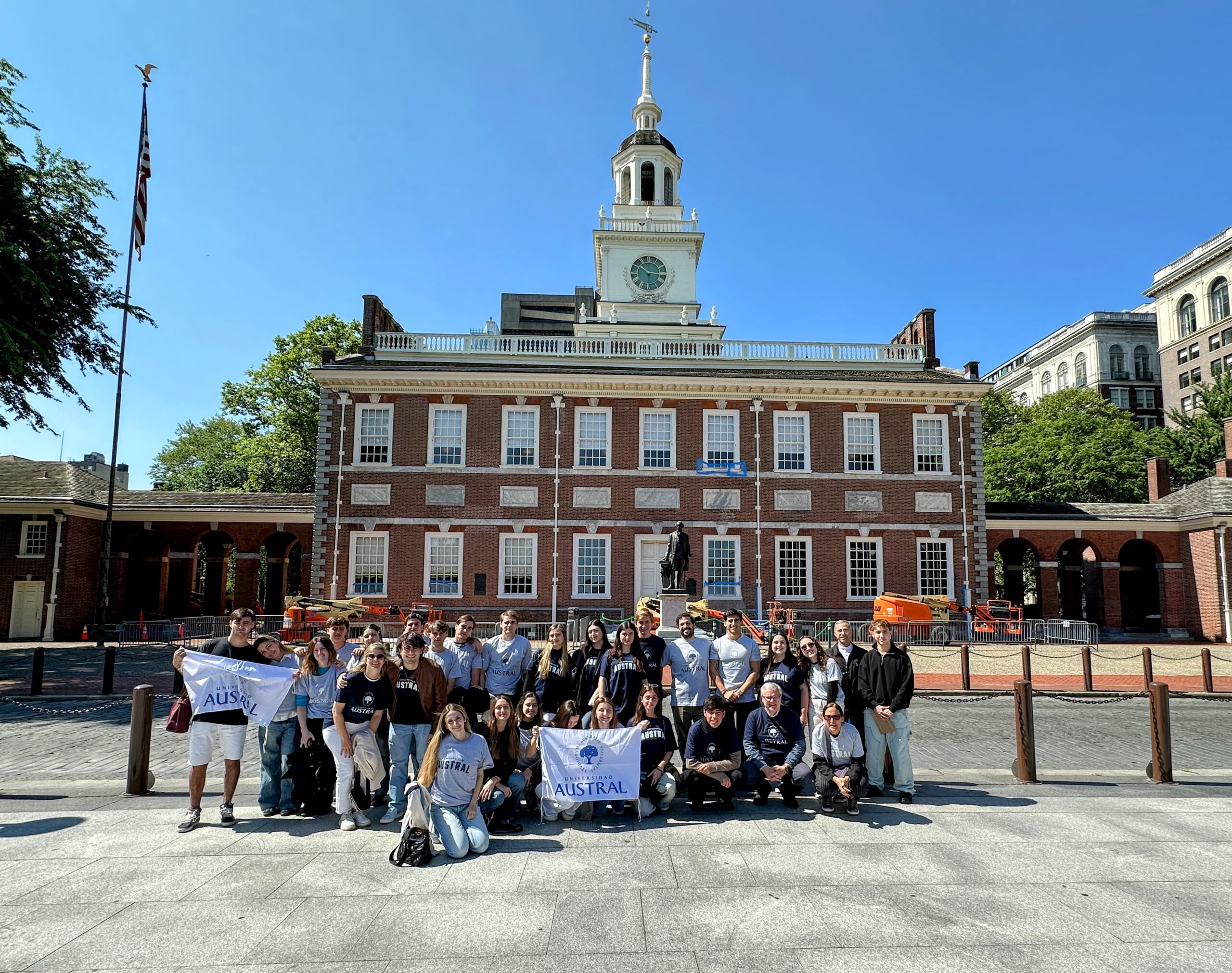 Para Benjamín Olivera, que ya está terminando sus estudios de Abogacía, el viaje reafirmó su vocación por trabajar para cambiar la realidad argentina y encendió con otro calor la chispa de perseguir sus sueños. “Fue una travesía del alma, un itinerario trazado entre las coordenadas del conocimiento y la emoción. Recorrimos Estados Unidos, pero en verdad nos recorríamos por dentro, hacíamos una introspección de nosotros mismos. Washington, Nueva York, Filadelfia, Boston no fueron solo ciudades: fueron espejos donde vimos reflejado el futuro que soñamos construir como profesionales del Derecho egresados de la Universidad Austral. Cada paso fue una página escrita en la bitácora de nuestras convicciones con recuerdos que marcarán nuestros próximos años, parte de un aprendizaje que no cabe en manuales ni programas, y no se enseña en las aulas pero nos devuelve transformados cuando se regresa a ellas. Un viaje hacia la esencia misma de cada una de las personas con quienes pudimos compartirlo. Nos fuimos compañeros de Universidad y volvimos hermanos de travesía”.