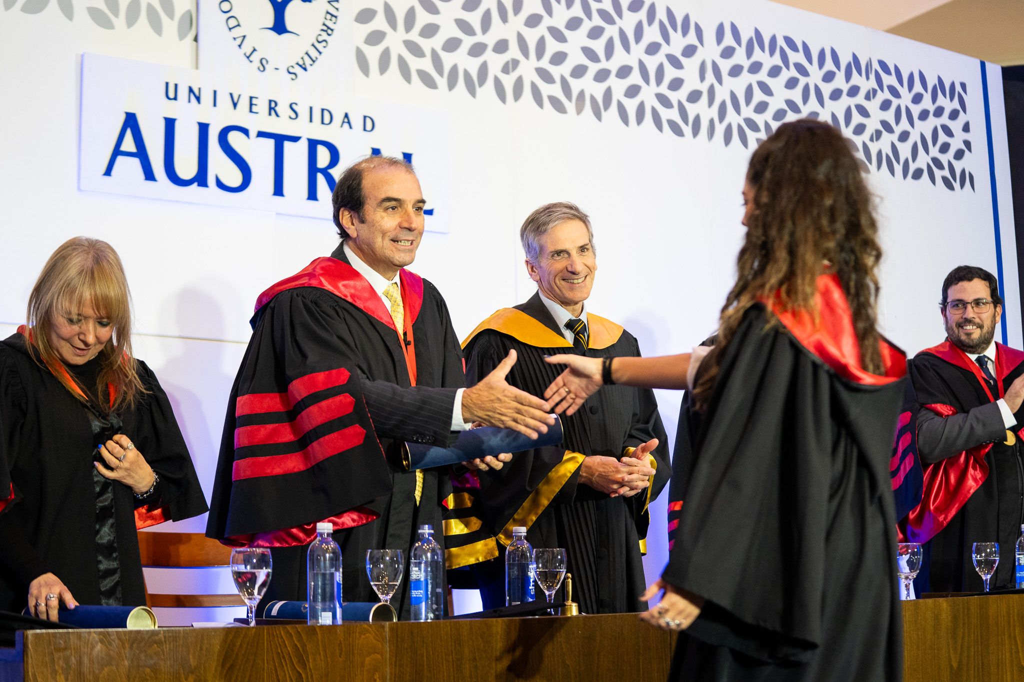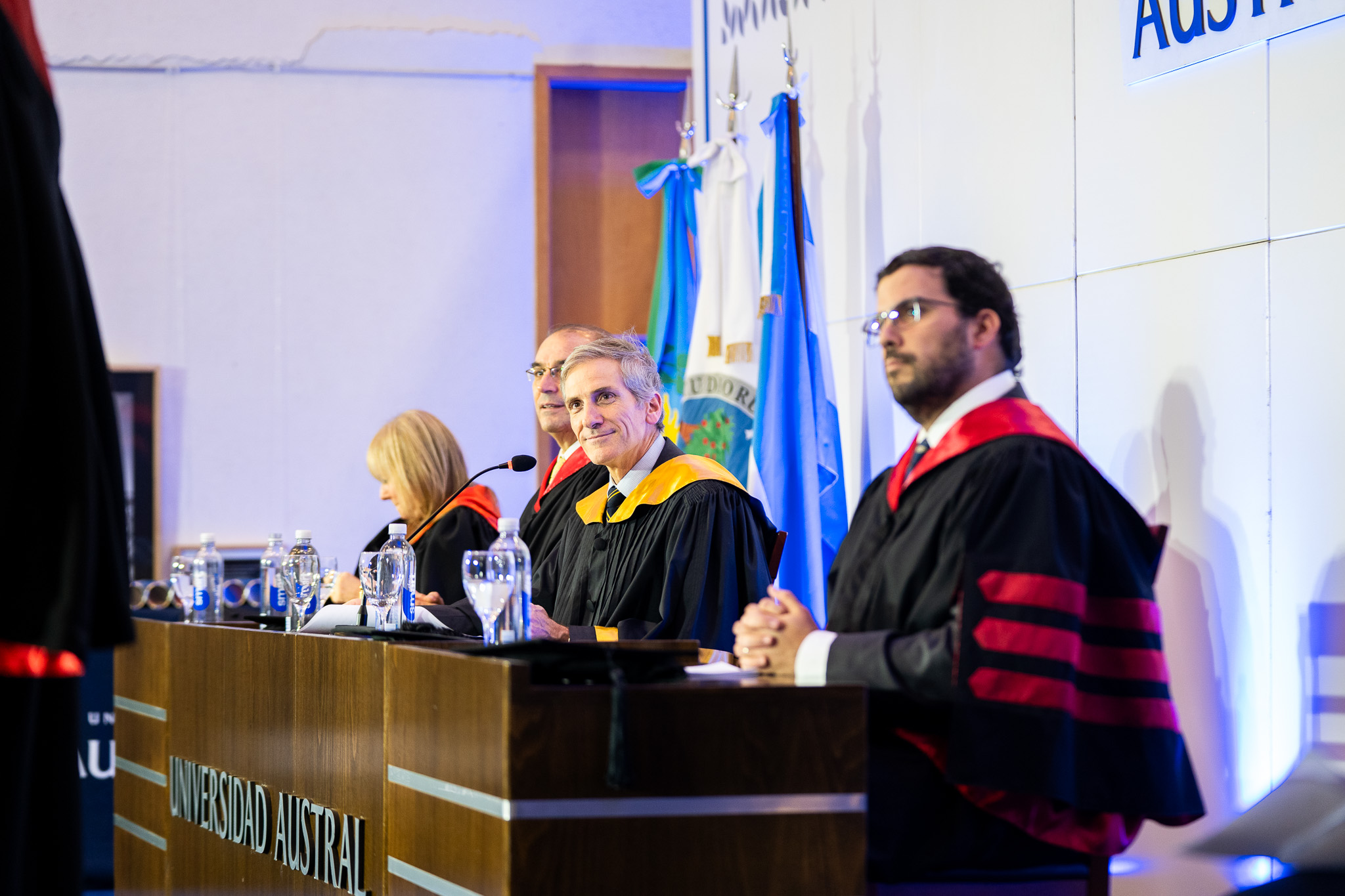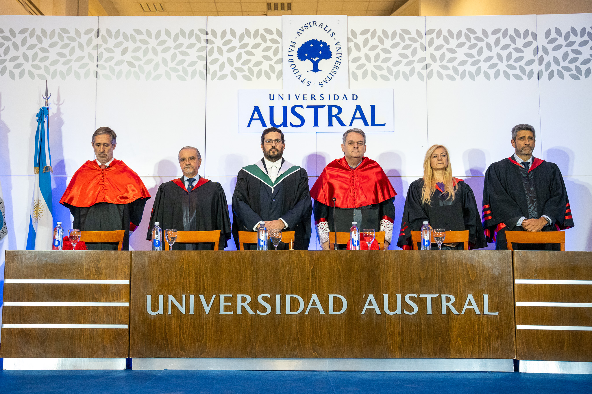 La ceremonia fue presidida por el magister Julián Rodríguez, rector de la Universidad Austral y fue acompañado en el estrado por: doctor Manuel García-Mansilla, decano de la Facultad; doctor Carlos Ignacio de Casas, secretario académico de la Facultad; el doctor Andrés Sánchez Herrero, miembro del Consejo de Dirección de la Facultad y director del Doctorado en Derecho; y la doctora Miriam Ivanega, miembro del Consejo de Dirección de la Facultad y subdirectora del Departamento de Derecho Administrativo.