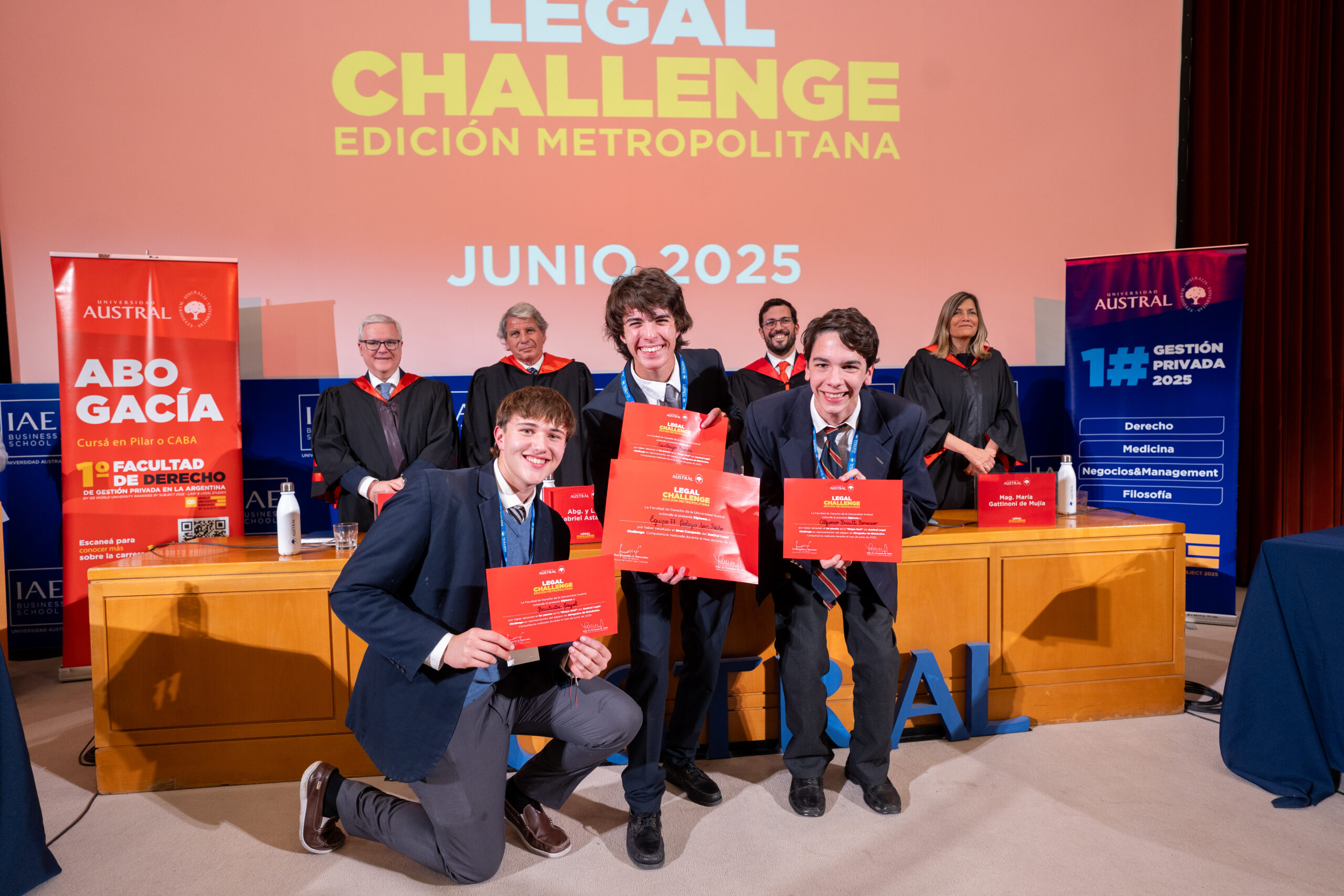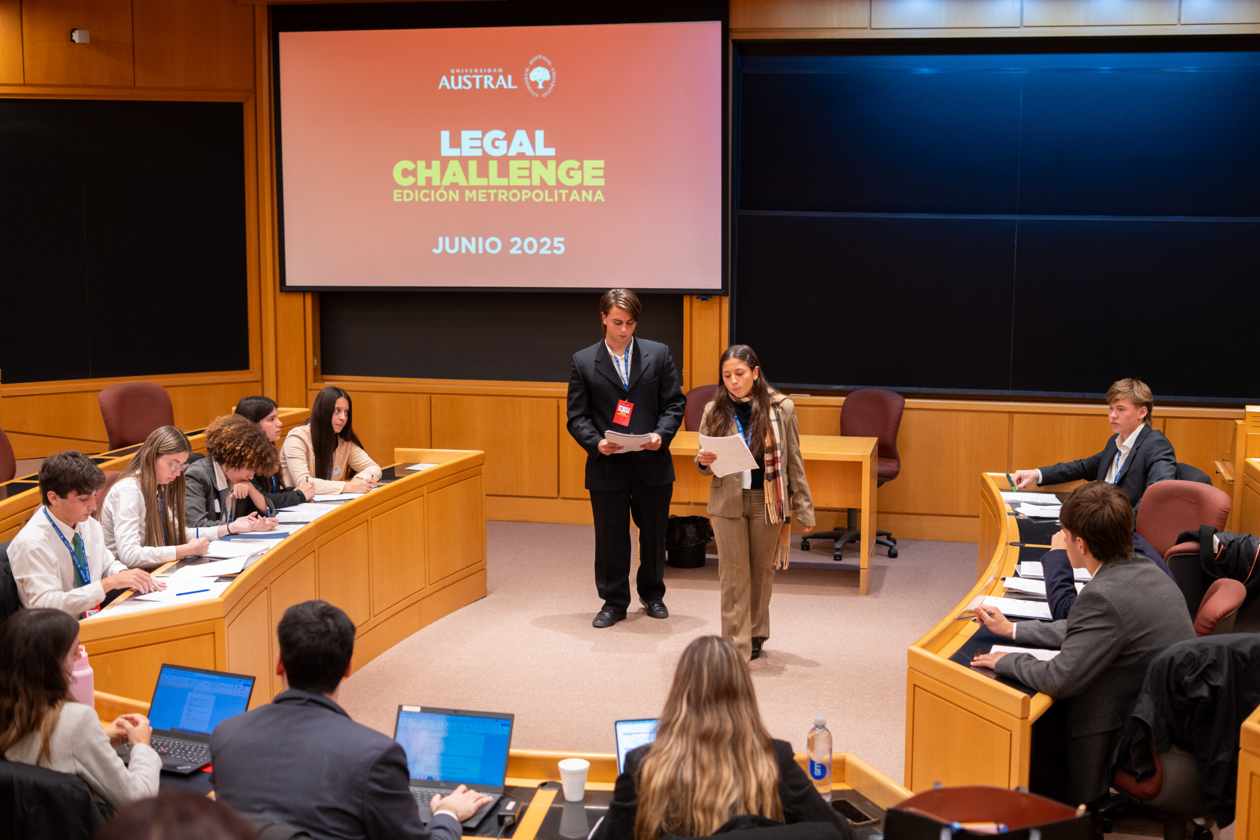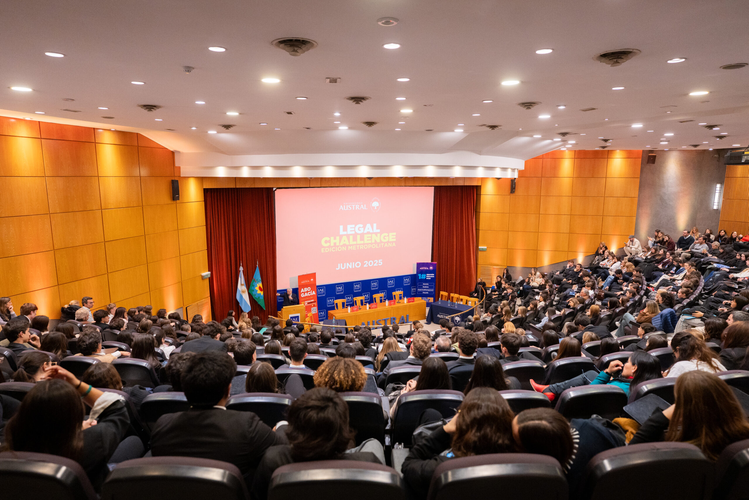 La vigésimo séptima edición del Austral Legal Challenge, el concurso de debate jurídico organizado por la Facultad de Derecho de la Universidad Austral, tuvo una participación récord: más de 350 estudiantes provenientes de 31 colegios del área Metropolitana de Buenos Aires asistieron a la instancia de debate oral que se llevó a cabo este lunes 23 de junio en el IAE Business School, la escuela de negocios de la Universidad Austral. “Estamos sumamente contentos con el balance de esta nueva edición dado que, hasta ahora, fue la competencia que mayor número de estudiantes reunió en su instancia presencial. El compromiso de los alumnos y de los docentes que los acompañaron fue sobresaliente”, explicó Federico Menéndez, profesor de la Carrera de Abogacía y Director General de la actividad.