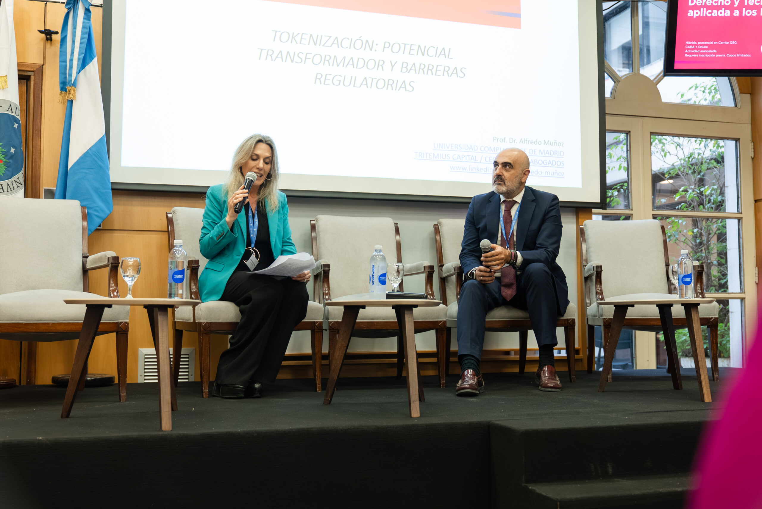 En la conferencia inaugural, Muñoz García expuso sobre “Tokenización: potencial transformador y barreras regulatorias” y habló sobre el proceso que transforma activos físicos o intangibles -como inmuebles, obras de arte o datos sensibles- en fragmentos digitales llamados tokens, que se registran en una blockchain o se utilizan para proteger datos valiosos.