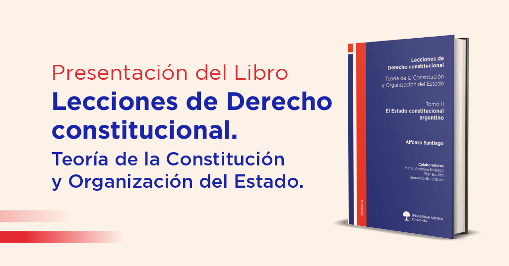 El Departamento de Derecho Constitucional de lFacultad de Derecho de la Universidad Austral, invita a participar de la Presentación del Libro “Lecciones de Derecho constitucional. Teoría de la Constitución y Organización del Estado. Tomo II. El Estado Constitucional argentino” del Dr. Alfonso Santiago