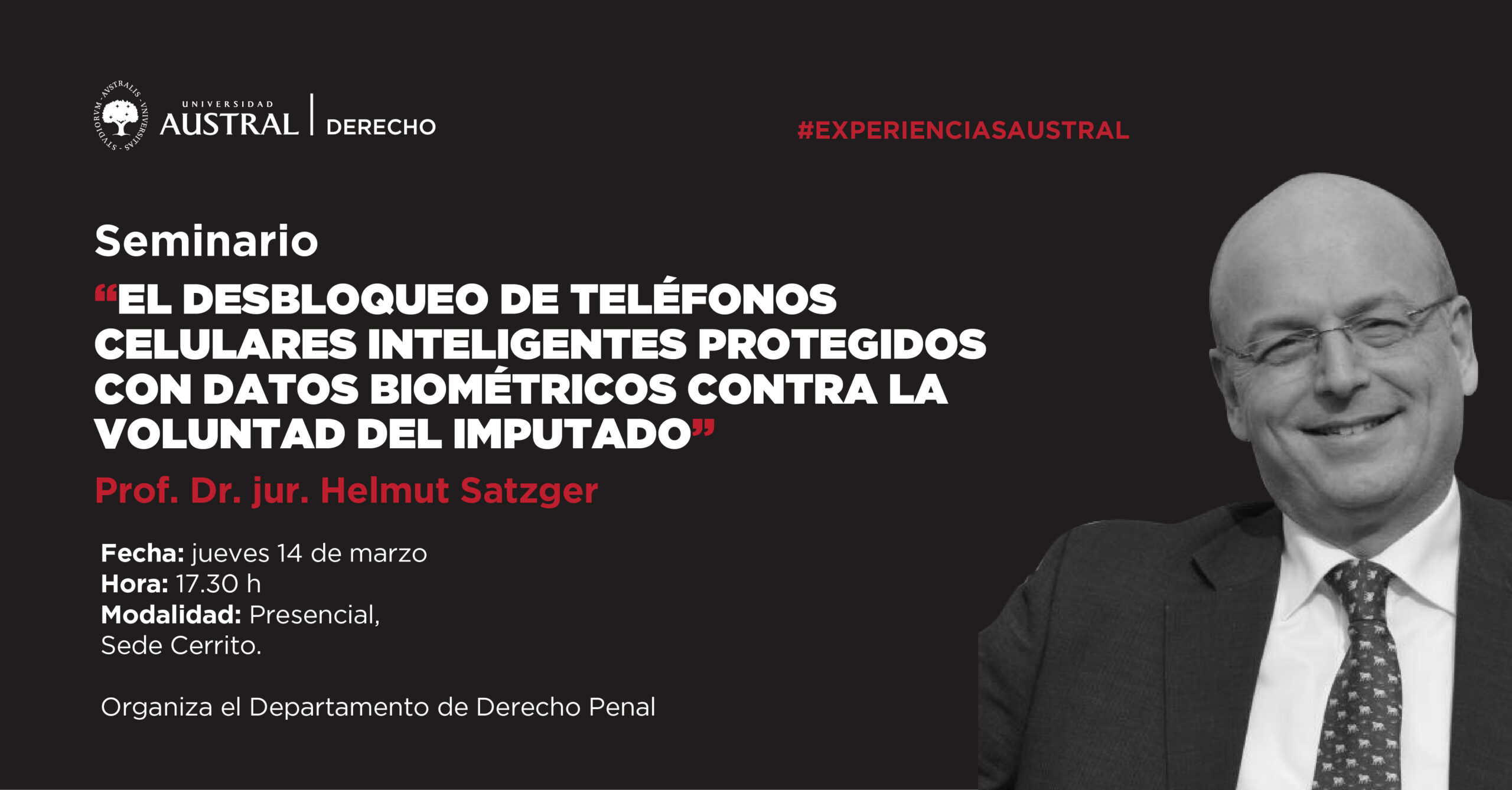 La Facultad de Derecho de la Universidad Austral, en conjunto con el Departamento de Derecho Penal y Procesal Penal y la Maestría en Derecho Penal, invitan a participar del Seminario: El desbloqueo de teléfonos celulares inteligentes protegidos con datos biométricos contra la voluntad del imputado