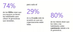 Los especialistas compartieron algunos datos relevantes: los CEOs creen que los equipos ya tienen conocimientos para empezar con proyectos de inteligencia artificial. Por otro lado, los roles soft que entienden el negocio y saben cómo hacer búsquedas dentro de los datos y proponer alguna solución, hoy son los perfiles más buscados, ya no se necesita alguien que maneje Python o que se enfoque en el desarrollo.