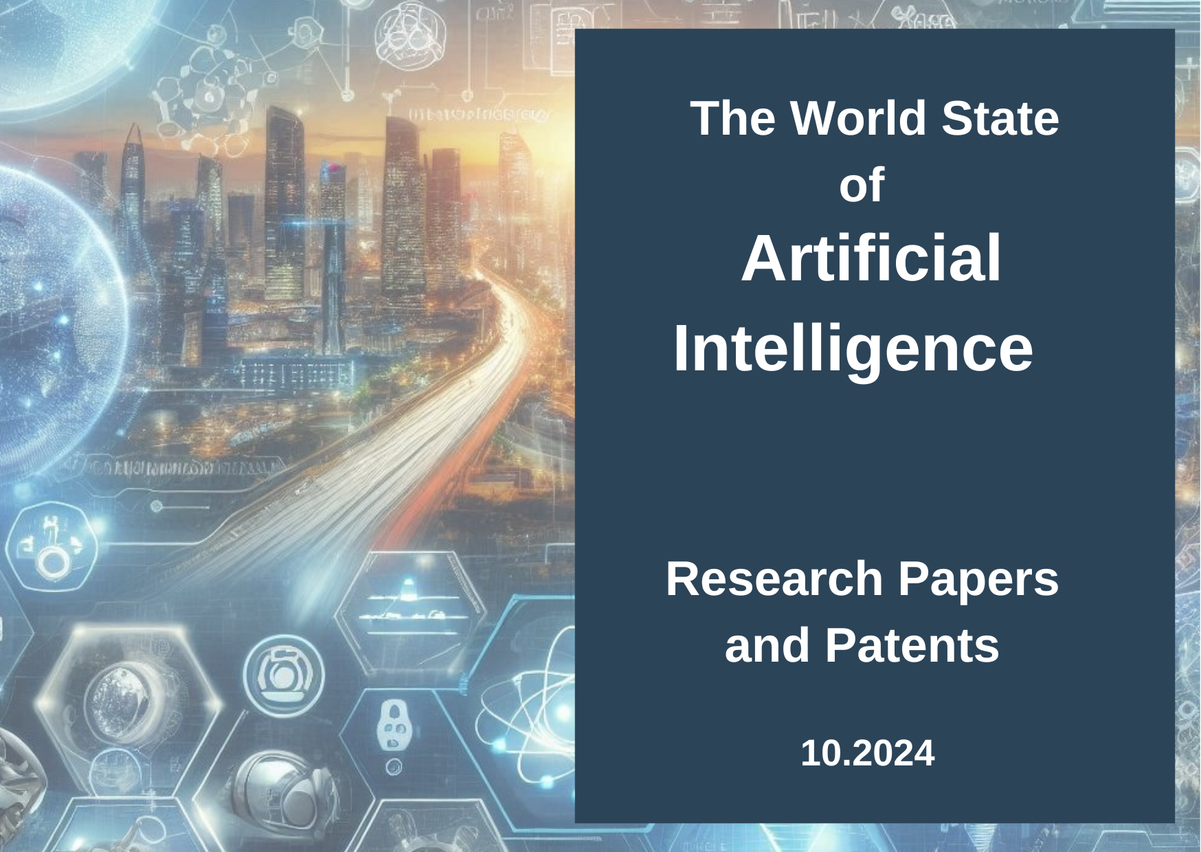 The Artificial Intelligence research works and patented developments in the last five years are shaping the future, having direct impact on the global economy and society. This paper provides a comprehensive literacy analysis and metrics sourced from the Lens.org platform. We focused the analysis on the cur-rent state of AI innovations, captured from research papers and patents. Since1978, the total number of registered research production is 1,262,789 pa-pers (198,163 from 2019 to 2024), 2023being the most productive year (74,426 articles). The analysis underscores Asia, notably China (CH), as the primary hub for artificial intelligence research. Institutional affiliations reside in Asia, with the Chinese Academy of Sciences leading with 5,512 articles. Wei Wang emerg-es as a prominent figure and the thematic dominate cluster is Computer Vision. On the other hand, in the last five years of production there were 316,883 patents. US leads the applications, followed by CH. Samsung Electronics Co. Ltd. is the first in the east and IBM leads the west region. The top inventors are found at Qualcomm Inc. and LG Electronics. The main cluster is Computing arrangement based on specific computational models, such as machine learning, learning methods, combinations of networks, backpropagation, recurrent networks, prob-abilistic graphical models and inference or reasoning models. This analysis sheds light to researchers, policymakers, investors, and inventors on the current land-scape of AI research and development, showing as its main insight that there is a wide gap between industry and academy.