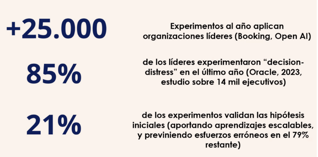 ¿Consiste en aplicar el método científico en el mundo organizacional? Exacto. Trasladar el método científico al ámbito empresarial permite testear ideas y luego, con las conclusiones obtenidas, minimizar el costo de equivocarse y tomar mejores decisiones.