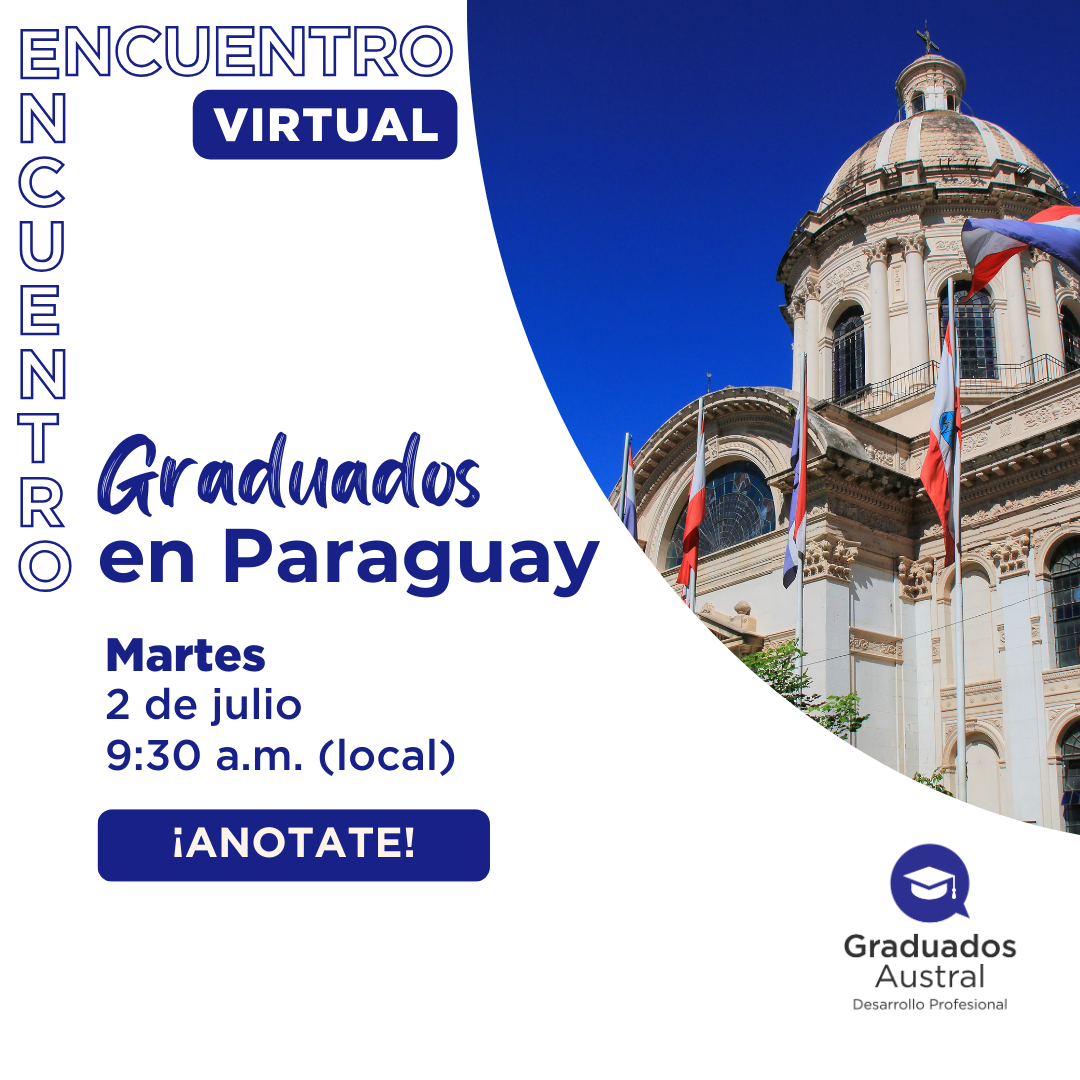 Con la intención de seguir fortaleciendo los lazos de la Comunidad Austral en toda la región, desde el Departamento de Graduados y Desarrollo Profesional de la Universidad Austral organizamos un encuentro con Graduados de la institución que viven en Paraguay. Nos reuniremos de manera virtual martes 2 de julio a las 9:30  a.m. (hora de Paraguay).