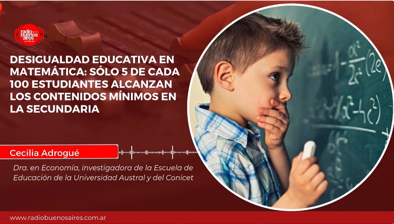 La doctora en Economía y especialista en temas educativos, Cecilia Adrogué, expuso un panorama "dramático" sobre el estado de la educación en Argentina, señalando una caída en los niveles de aprendizaje junto con un aumento de la desigualdad entre los alumnos más y menos vulnerables. La investigadora de la Universidad Austral y el Conicet, en diálogo con Radio Buenos Aires AM 1350, detalló el indicador que elaboró junto a Eugenio Orliqui, el cual mira el nivel de aprendizajes y las disparidades en Lengua y Matemática.