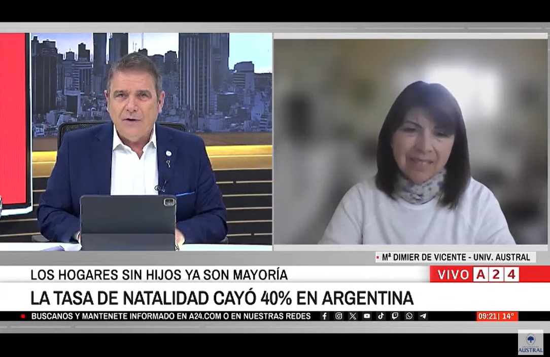Dra. Dolores Dimier de Vicente, secretaria Académica del Instituto de Ciencias para la Familia de la Universidad Austral, y coautora del informe sobre estructuras familiares y cambios sociales en Argentina del Observatorio del Desarrollo Humano y la Vulnerabilidad, fue entrevistada en A24, a raíz de la lectura sobre la evolución del índice de natalidad en Argentina durante la última década.