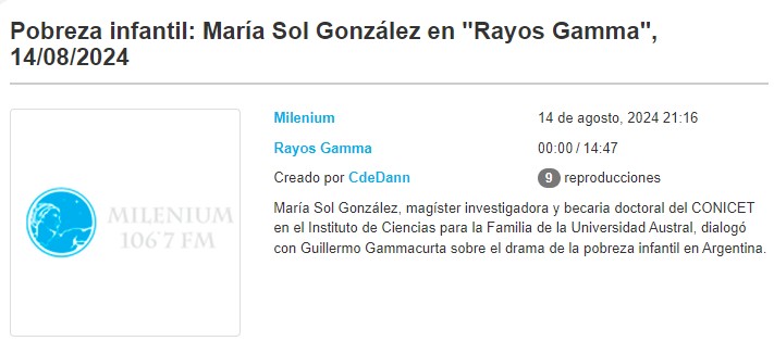 María Sol González, magíster investigadora y becaria doctoral del CONICET en el Instituto de Ciencias para la Familia de la Universidad Austral, dialogó con Guillermo Gammacurta sobre el drama de la pobreza infantil en Argentina.