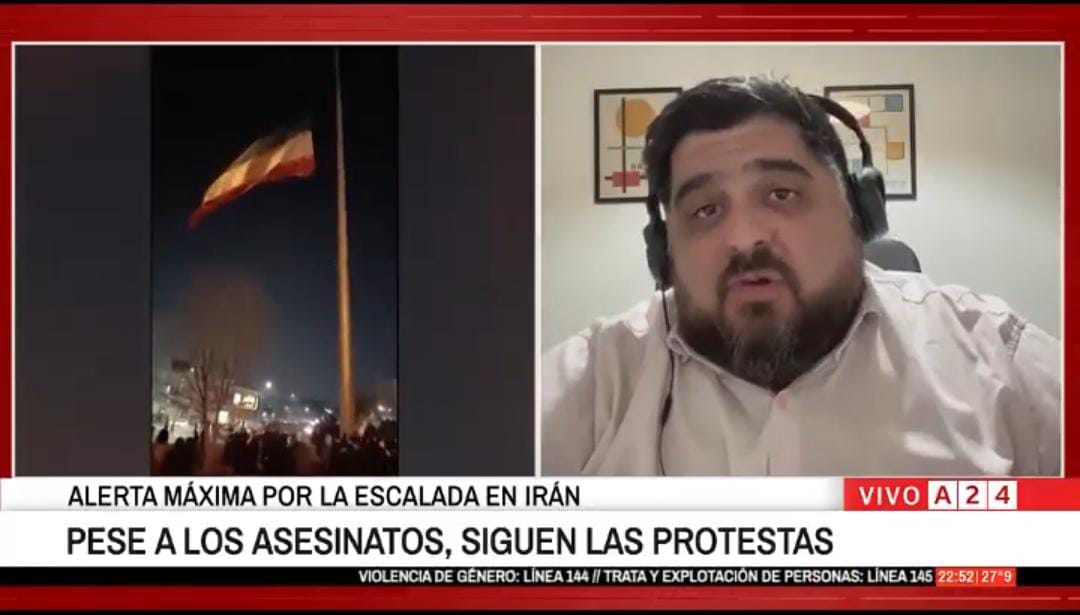 En Basta Baby (A24), Said Chaya, director del Núcleo de Estudios en Medio Oriente de la Universidad Austral, advirtió sobre el aumento de la tensión entre Irán y Estados Unidos, tras las amenazas iraníes a bases militares en la región. Señaló que, pese a la represión y los asesinatos, las protestas continúan impulsadas por una profunda crisis política, económica y social, y remarcó que no se trata de un fenómeno externo sino de un conflicto interno cada vez más complejo.