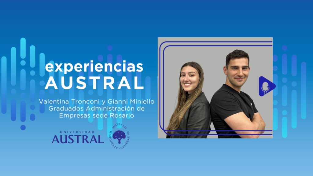 “EXPERIENCIAS AUSTRAL” Episodio #5 👉 Hoy entrevistamos a Valentina Tronconi Torelli y Gianni Miniello graduados de la carrera de Administración de Empresas de la Universidad Austral sede Rosario. Conversamos sobre su experiencia como equipo que recibió la incubación para el proyecto final de tesis.