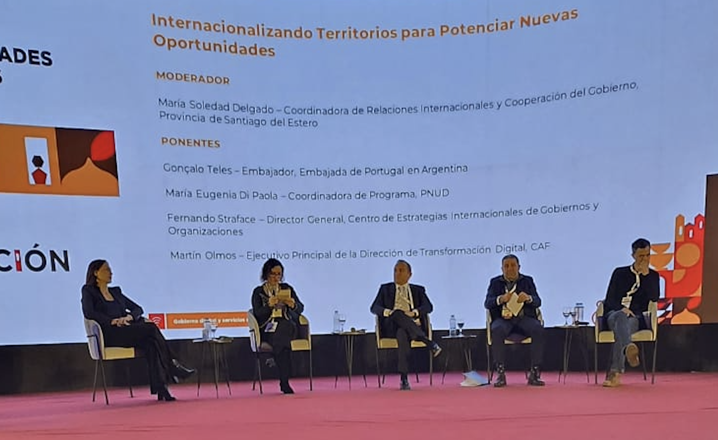 La presentación tuvo lugar en el panel “Internacionalizando Territorios para Potenciar Nuevas Oportunidades”, que contó con la participación de Gonçalo Teles, Embajador de Portugal en Argentina, y Martín Olmos, Ejecutivo Principal de la Dirección de Transformación Digital de CAF. La conversación fue moderada por María Soledad Delgado, Coordinadora de Relaciones Internacionales y Cooperación del Gobierno de la Provincia de Santiago del Estero.