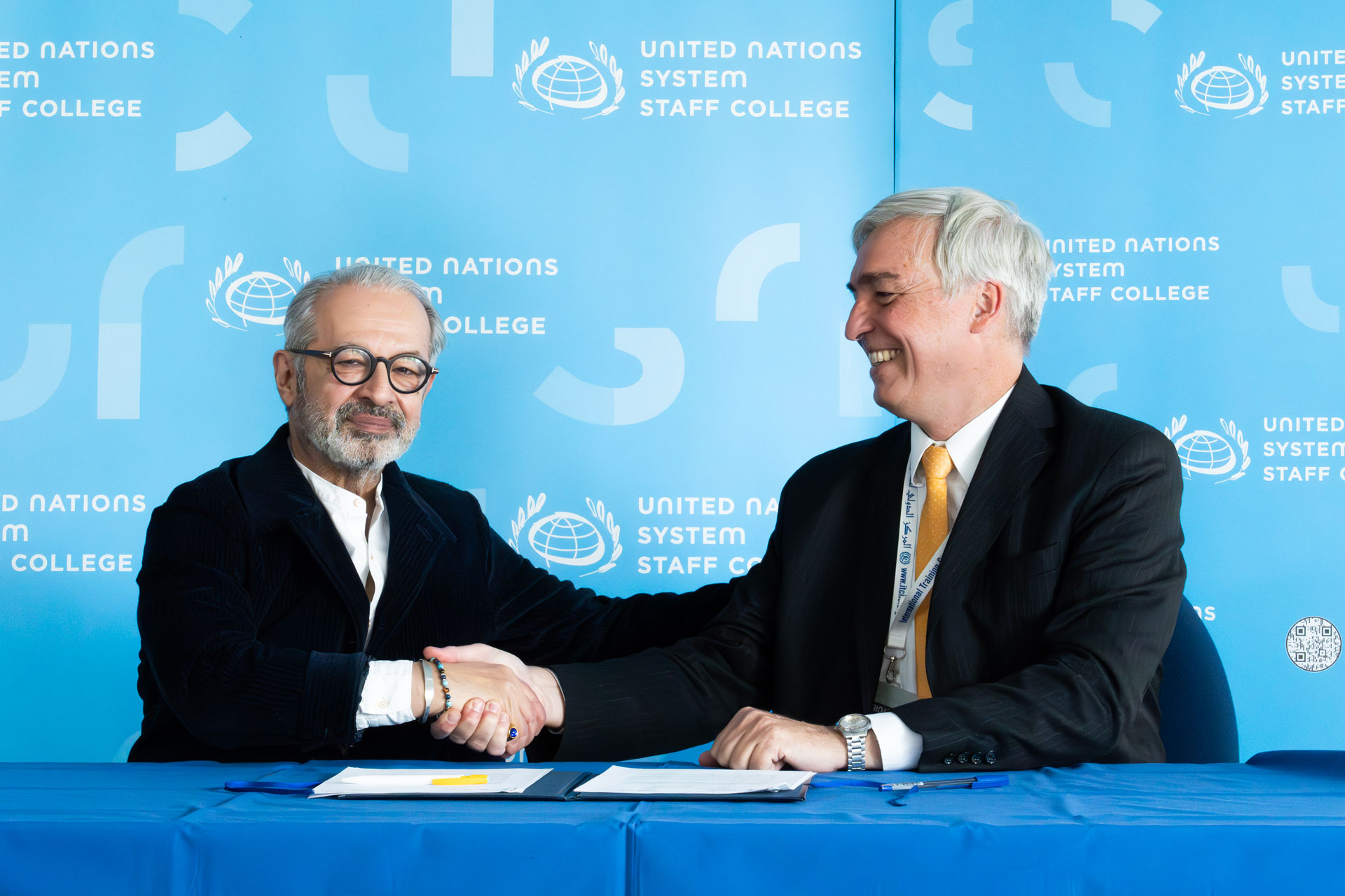La firma del convenio se llevó a cabo en el campus que el organismo posee en la ciudad de Turín, Italia, y contó con la presencia de Jafar Javan, director de la United Nations System Staff College (UNSSC), y de Alfonso Santiago, director de la Escuela de Política, Gobierno y Relaciones Internacionales de la Universidad Austral. Rubricado el pasado 30 de enero, este acuerdo permitirá realizar actividades de formación conjunta entre ambas instituciones destinadas a los funcionarios de Naciones Unidas, así como a profesionales y líderes sociales. La UNSSC ha seleccionado un reducido número de Escuelas de Gobierno de distintas regiones del mundo con las que pretende realizar actividades de cooperación conjuntas.