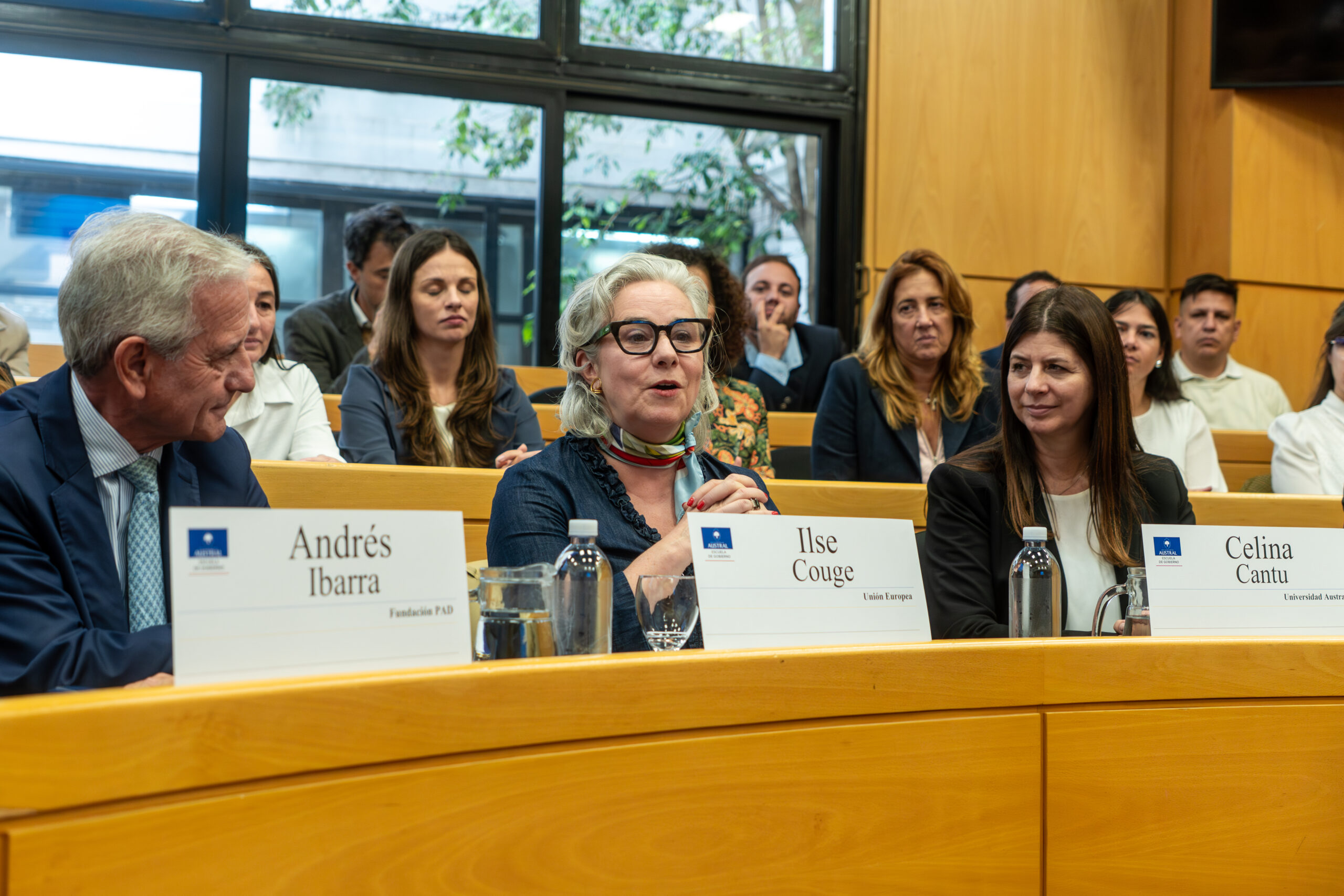 La actividad se llevó a cabo este lunes 7 de abril en la sede porteña de nuestra Universidad y contó con palabras de bienvenida de Andrés Ibarra, presidente de la Fundación PAD; Alfonso Santiago, director de la Escuela de Gobierno y de Ilse Cougé, jefa de Cooperación de la Delegación de la Unión Europea en Argentina. Estuvieron también presentes las autoridades de la Facultad de Derecho de nuestra casa de estudios, Gabriel M. Astarloa y Celina Cantú, decano y vicedecana, respectivamente. También el embajador de la Unión Europea en Argentina, Amador Sánchez Rico, a través de un video saludó a los nuevos participantes y reafirmó el compromiso de la Unión Europea para colaborar en la construcción de sociedades democráticas, inclusivas y resilientes.