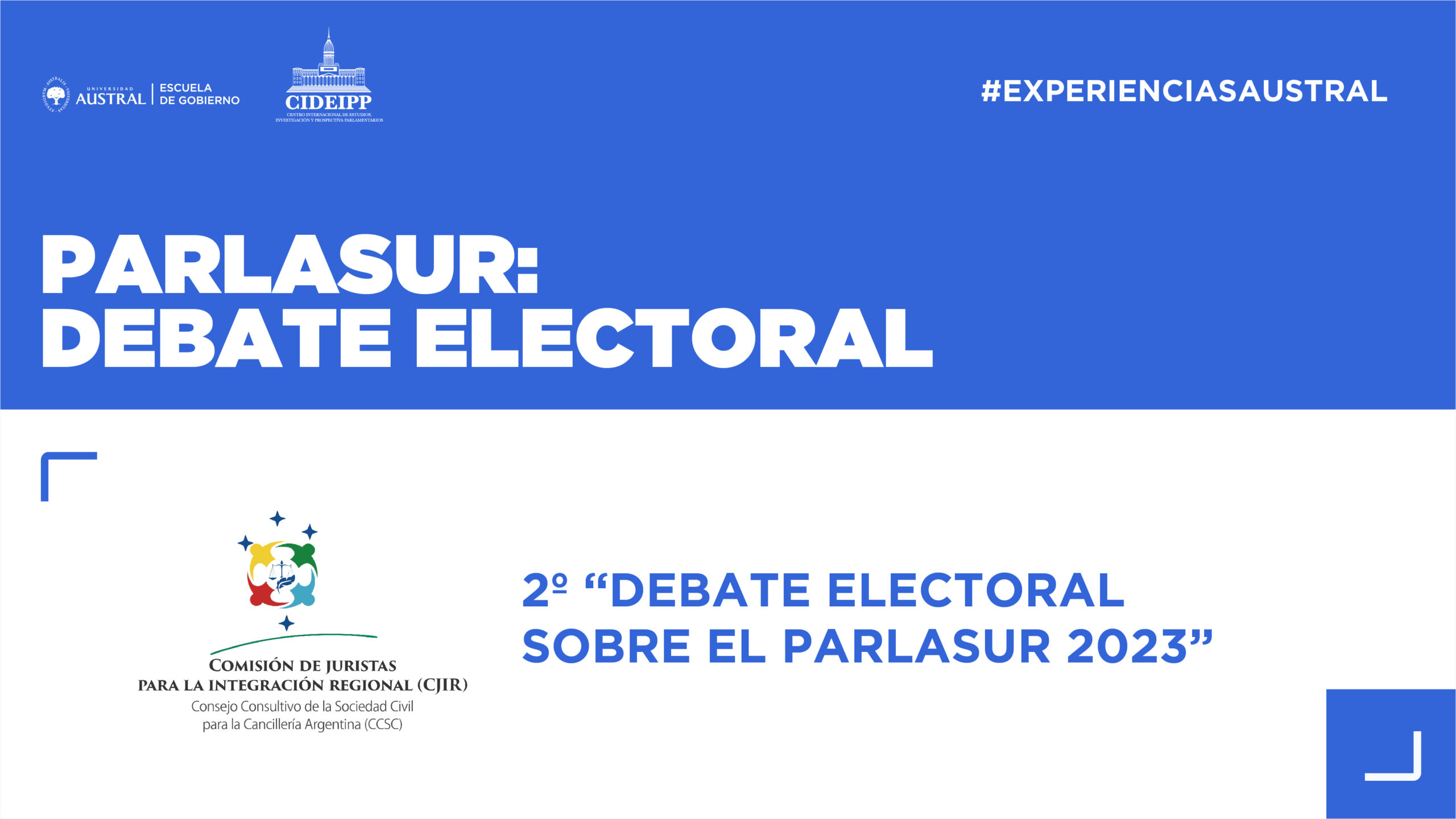La Escuela de Gobierno de la Universidad Austral en conjunto con el CIDEIPP - Centro Internacional de Estudios, Investigación y Prospectiva Parlamentarios - invitan a participar del PARLASUR: DEBATE ELECTORAL- "2do DEBATE ELECTORAL SOBRE EL PARLASUR 2023".