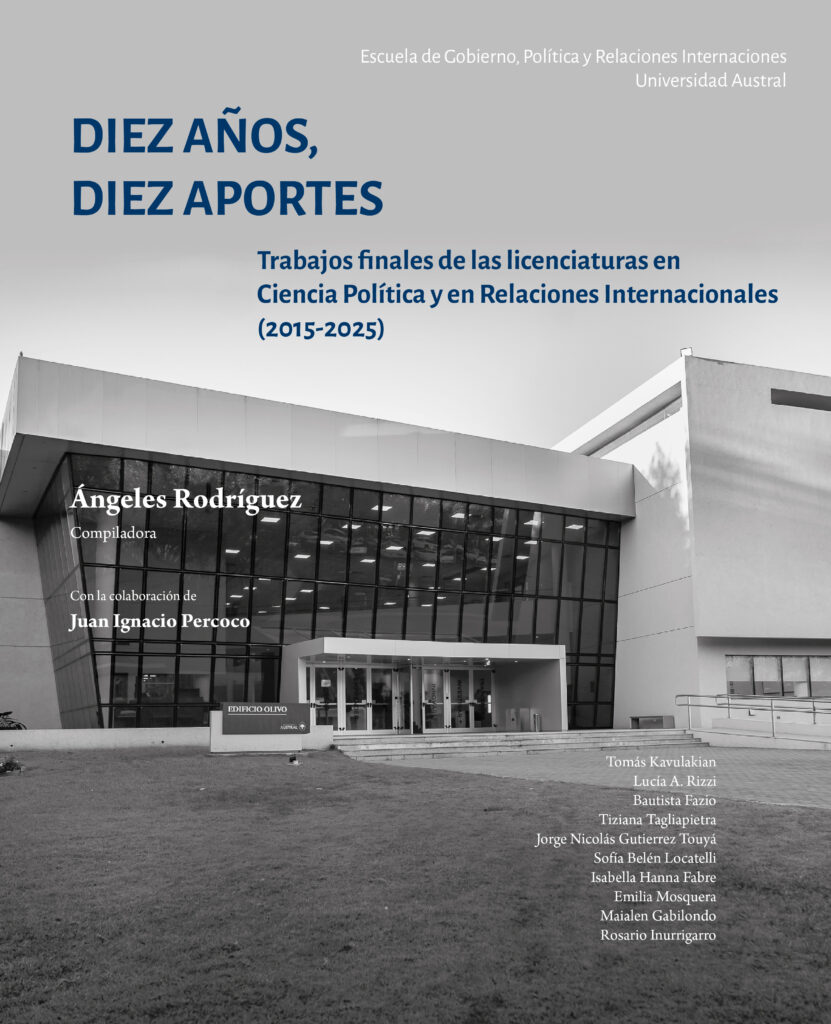 La Escuela de Gobierno de la Universidad Austral invita a participar de la Presentación del libro | 10 años, 10 aportes. Trabajos Finales de Grado de las Licenciaturas en Ciencia Política y Relaciones Internacionales (2015-2025).