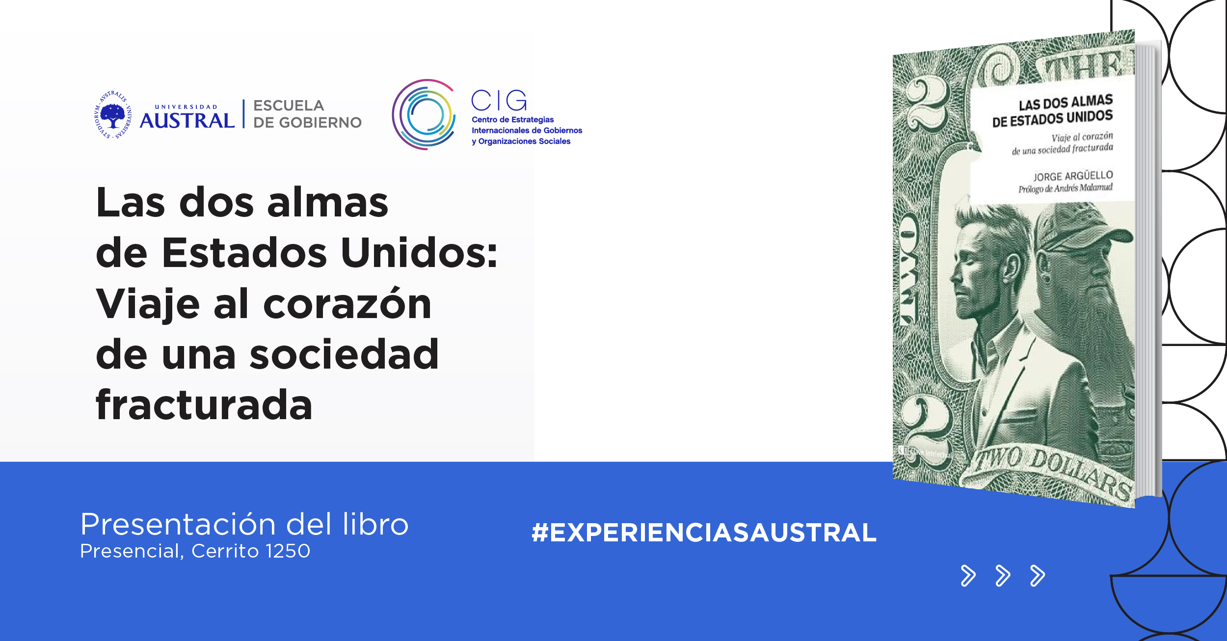 La Escuela de Gobierno y el Centro de Estrategias Internacionales de Gobiernos y Organizaciones Sociales (CIG) de la Universidad Austral, invitan a participar de la presentación del libro “Las dos almas de Estados Unidos: Viaje al corazón de una sociedad fracturada” cuyo autor es Jorge Argüello.
