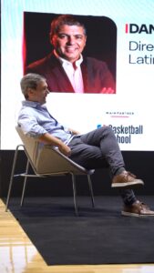 Por un lado, moderó el panel de Daniel Soares, Director de Operaciones de Básquetbol de Latinoamérica en la NBA, donde se abordó la expansión de la liga fuera de Estados Unidos, su crecimiento y el desarrollo del negocio en mercados como Argentina y Brasil.