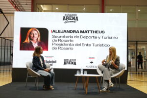 En representación de la Universidad, María Laura Favarel, Directora de la Lic. en Marketing con orientación en Comunicación y Diseño, entrevistó a Alejandra Mattheus, Secretaria de Deporte y Turismo de Rosario y Presidenta del ETUR, con quien conversó sobre el impacto del deporte en el turismo local.