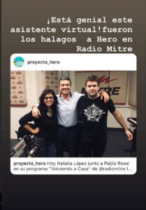 Varios programas de radio también contactaron a la Dra. Belén Mesurado durante esos días, manifestando su interés por ‘Hero’.