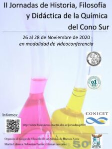 Anunciamos que las II Jornadas de Historia, Filosofía y Didáctica de la Química del Cono Sur (JHFDQCS 2020), se llevaron a cabo del 26 al 28 de Noviembre de 2020 en la modalidad «virtual», es decir, por videoconferencia.
