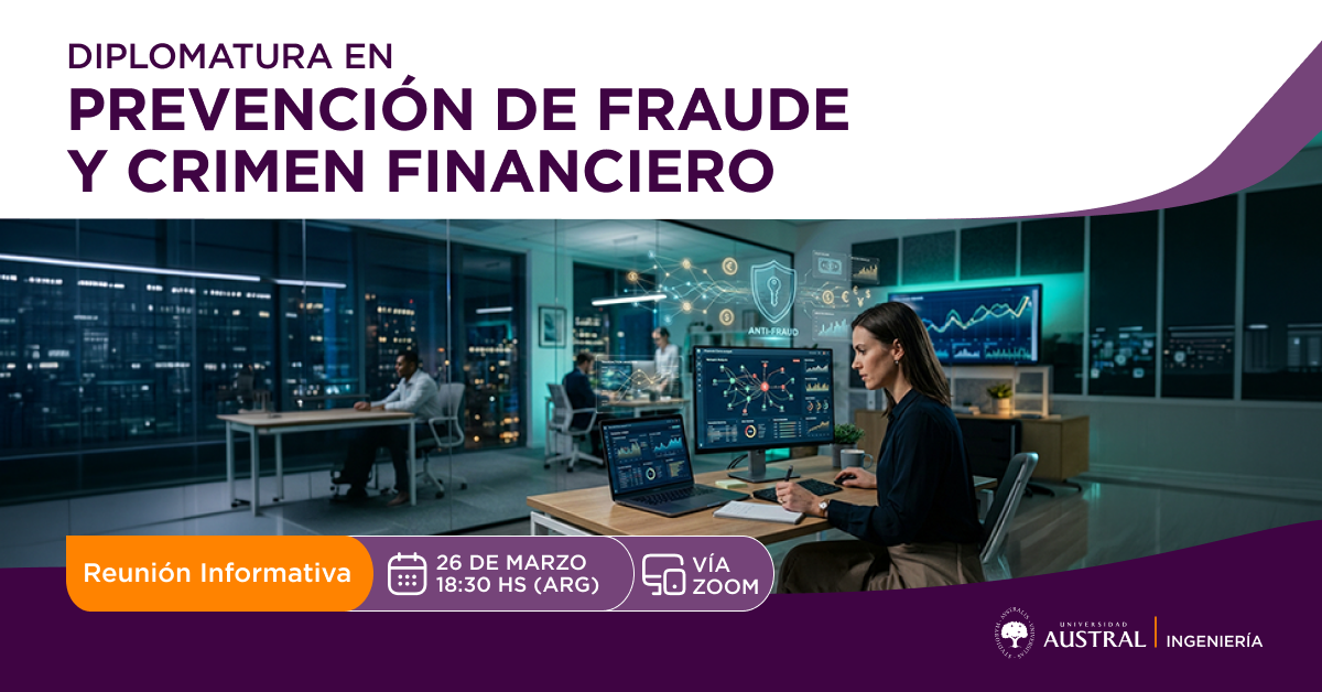 En esta reunión informativa vas a poder conocer en profundidad la Diplomatura en Prevención de Fraude y Crimen Financiero de la Facultad de Ingeniería de la Universidad Austral y descubrir cómo prepararte para enfrentarlo desde una mirada estratégica y de negocio.