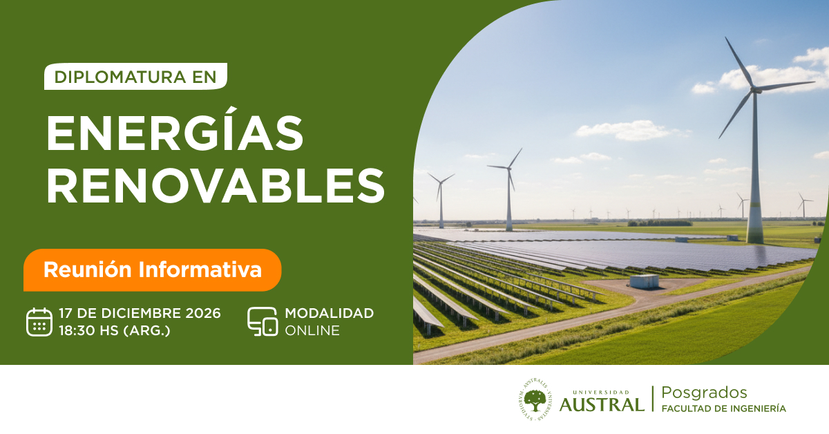 La Diplomatura en Energías Renovables te prepara para liderar proyectos solares, eólicos e iniciativas de hidrógeno con una mirada estratégica y aplicada. En solo 6 meses, y 100% online, aprendé con expertos de la industria y abrí la puerta a nuevas oportunidades en la transición energética que ya está transformando el país y la región.
