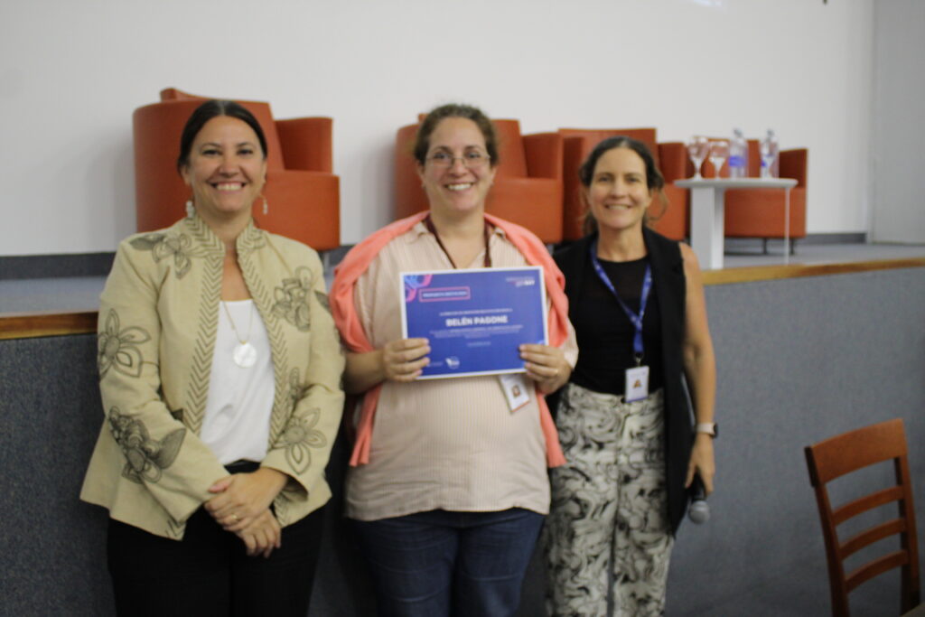 Belén Pagone, profesora de Economía General en las cinco carreras de grado de la Facultad de Ciencias Empresariales, fue la ganadora del 1.er premio. En sus palabras, destacó el valor del trabajo colectivo y el diálogo constante con los estudiantes: “Este premio es una alegría enorme porque refleja el trabajo realizado con dedicación y pasión, siempre pensando en transformar la experiencia de los estudiantes y que no les resulte indiferente. Ha sido un camino de aprendizaje, con prueba y error desde la pandemia, pero siempre en diálogo con ellos, que son los verdaderos protagonistas”.