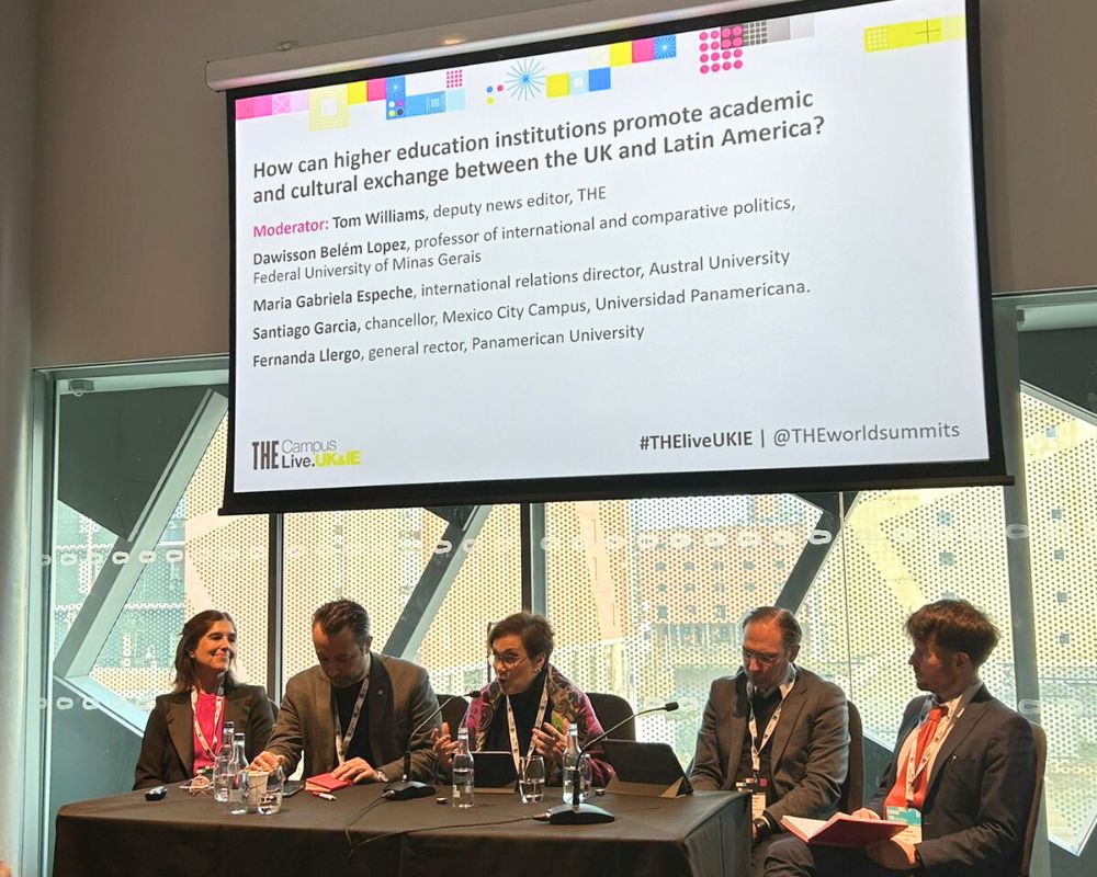 María Gabriela Espeche Gil, directora de Relaciones Internacionales de la Universidad Austral, representó a nuestra universidad y formó parte del panel sobre “¿Cómo puede la educación superior promover el intercambio académico y cultural entre el Reino Unido y América Latina?”. Compartió el espacio junto a representantes de dos universidades de LATAM: Dawison Belem Lópes, profesor de Política Internacional y director de GoBernanza de Datos de la Universidad Federal de Minas Gerais de Brasil; Fernanda Llergo Bay, rectora de la Universidad Panamericana de México, y Santiago García Álvarez, profesor y decano de la Facultad de Derecho de la Universidad Panamericana de México.