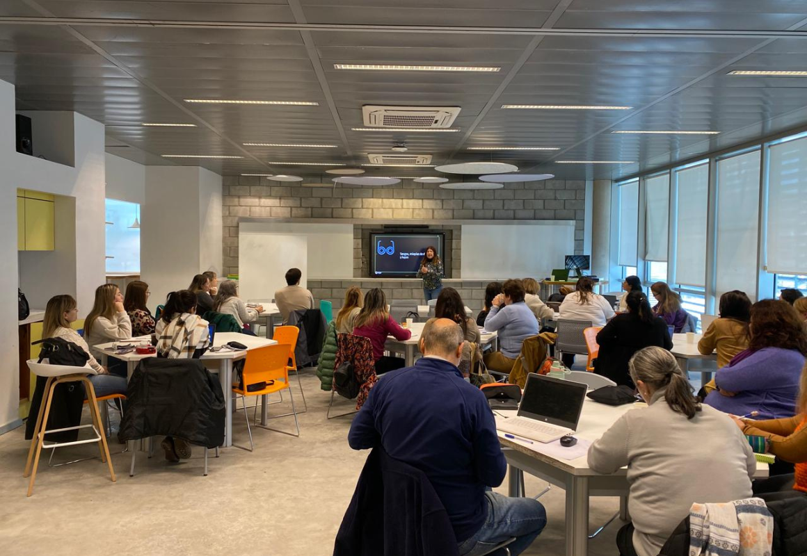 La jornada comenzó con palabras de bienvenida a cargo de la Mg. Karina Brahim, Directora de Extensión y Transferencia de la Escuela de Educación, y continuó con el taller “Tiempos modernos: la IA en la enseñanza”, dirigido por la Dra. Carina Lion, reconocida docente e investigadora especializada en el campo de la educación y la tecnología educativa.