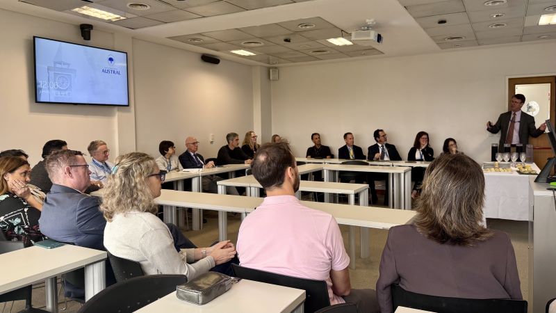 La agenda incluyó actividades en la Facultad, con recorridos por las instalaciones —entre ellos el Instituto de Investigaciones en Medicina Traslacional (IIMT) y el Centro de Simulación Clínica—, reuniones con equipos académicos y espacios de intercambio orientados a identificar oportunidades concretas de colaboración, así como también la visita al Hospital Universitario Austral.
