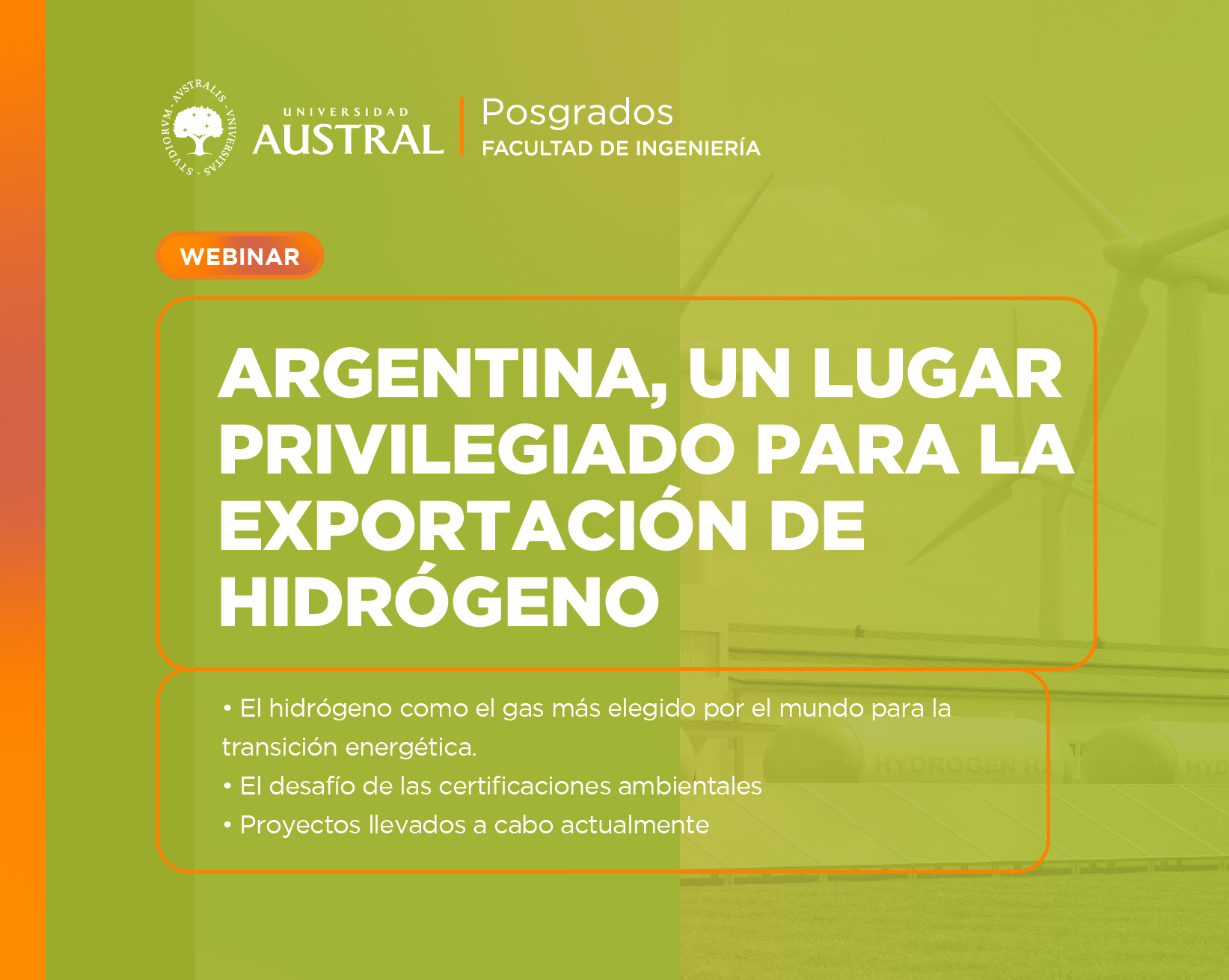 El área de posgrados de la Facultad de Ingeniería, en conjunto con el Instituto de Energía, organizaron un webinar sobre hidrógeno para debatir sobre los desafíos y oportunidades a los que se enfrenta la Argentina. Participaron del encuentro tres especialistas en el tema: Ab. Marina Paradela, Chance and Choices SL. Chao Solutions, Ab. Griselda Lambertini, Directora Académica del Centro de Estudios de la Actividad Regulatoria Energética (CEARE) de la Universidad de Buenos y MBA Lic. Sebastián Otero, Fortescue Energy Portfolio Manager, Proyecto Pampas. El moderador del encuentro fue Mag. Roberto Carnicer, Dir. del Instituto de Energía y de la Maestría en Gestión en Gas y Petróleo de la Universidad Austral.