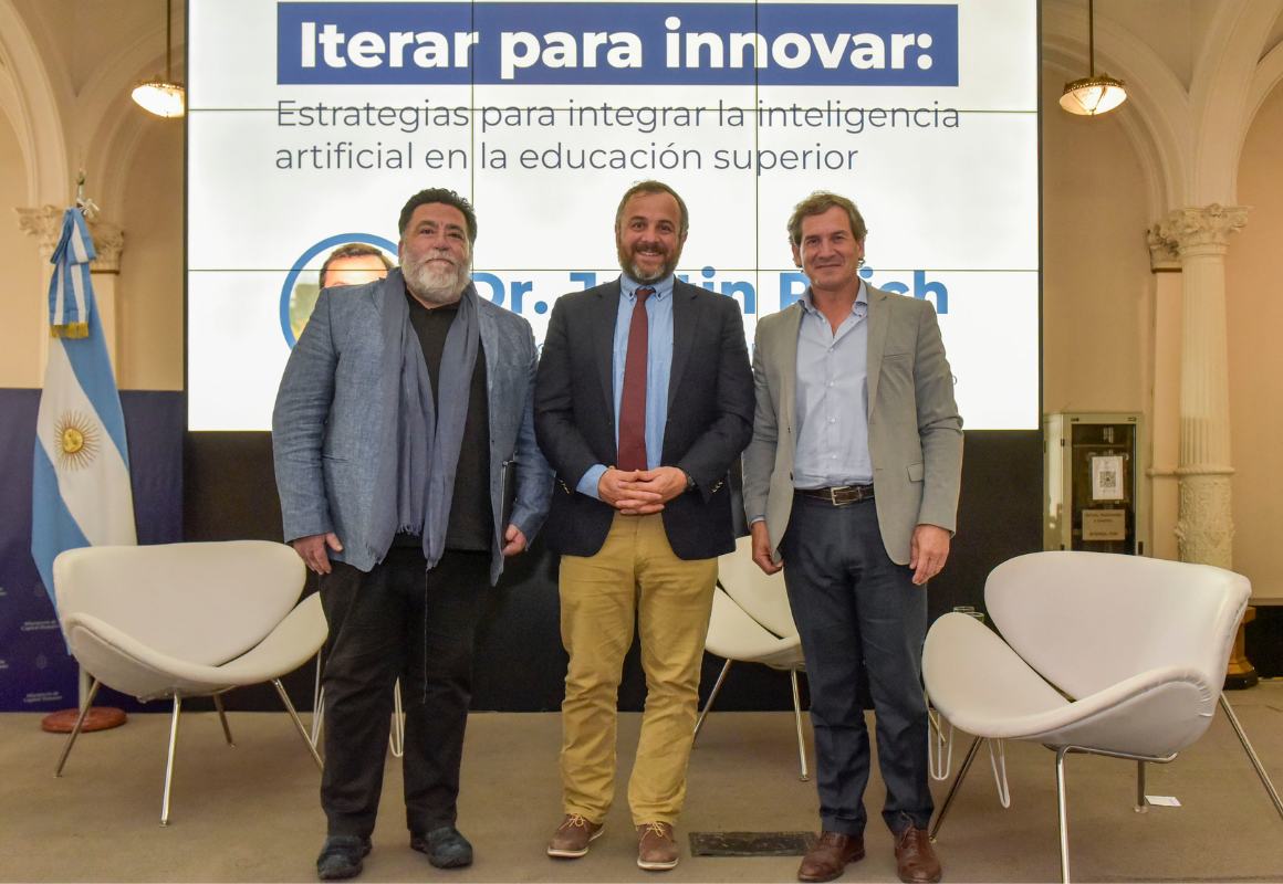 El encuentro contó con la participación del Dr. Justin Reich, profesor asociado en el MIT, investigador en Harvard y director del Laboratorio de Sistemas de Enseñanza del MIT; del Dr. Santiago Bellomo, decano de la Escuela de Educación de la Universidad Austral; y de Gustavo Riesgo, director del Programa Argentino de Innovación de la Educación con Inteligencia Artificial (PAIDEIA) de la Secretaría de Educación del Ministerio de Capital Humano de la Nación.