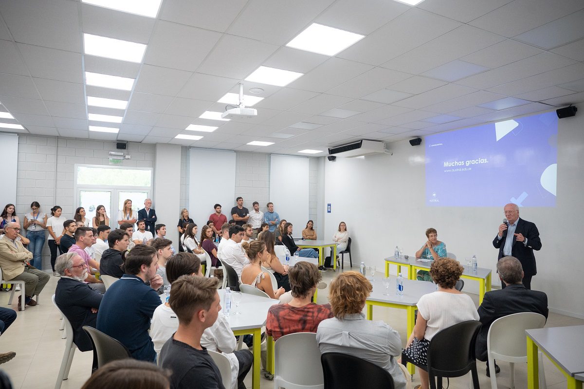 La inauguración del nuevo edificio Ceibo de la Universidad Austral, donde a partir de este año se dictarán clases de Ingeniería, fue encabezada por Gabriela Robiolo, decana de la Facultad de Ingeniería, y Paolo Rocca, presidente del Grupo Techint. En el marco de la inauguración, Paolo Rocca participó de un encuentro con jóvenes estudiantes becados de las carreras de Ingeniería Industrial, Ingeniería Informática e Ingeniería Biomédica.