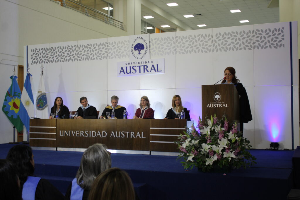 El evento fue presidido por el rector, Mg. Julián Rodríguez, junto al Consejo Directivo de la Escuela de Educación, el decano Dr. Santiago Bellomo, la secretaría académica Dra. Ángela Corengia, la directora de estudios Mag. Karina Brahim y la directora de investigación Dra. Florencia Daura