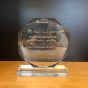 Fernando Sanchez Sarmiento defendió su tesis doctoral con honores y recibió un reconocimiento a su excelente desempeño. Se convirtió así en el segundo Doctor de la Facultad de Ingeniería