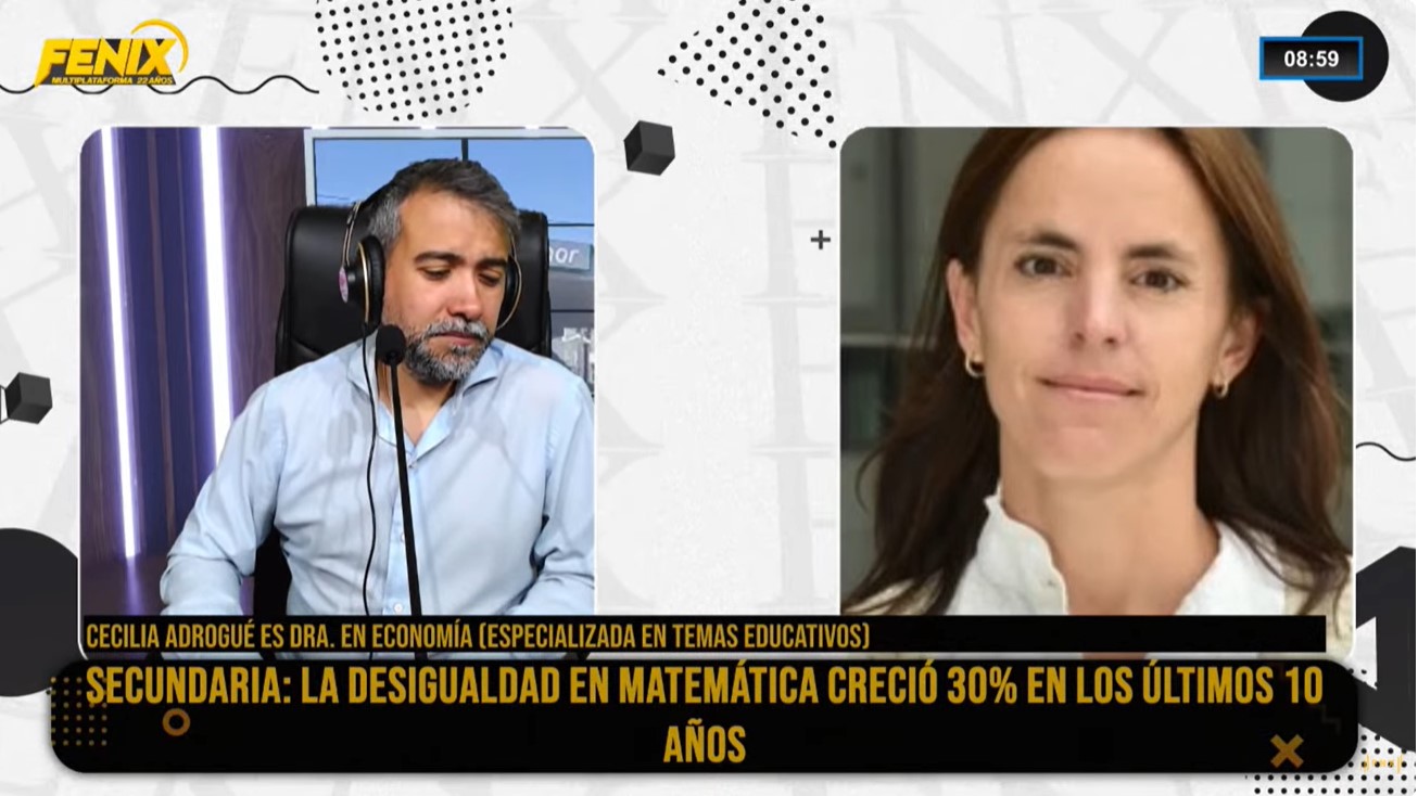 Entrevista a la investigadora Cecilia Adrogué sobre el Tercer Informe del Indicador de Desigualdad de Aprendizajes, elaborado por la Escuela de Educación de la UA, que analiza la evolución de la desigualdad de los aprendizajes entre los estudiantes argentinos más y menos vulnerables para los años comprendidos entre 2016 y 2024 a partir de los resultados del operativo Aprender.