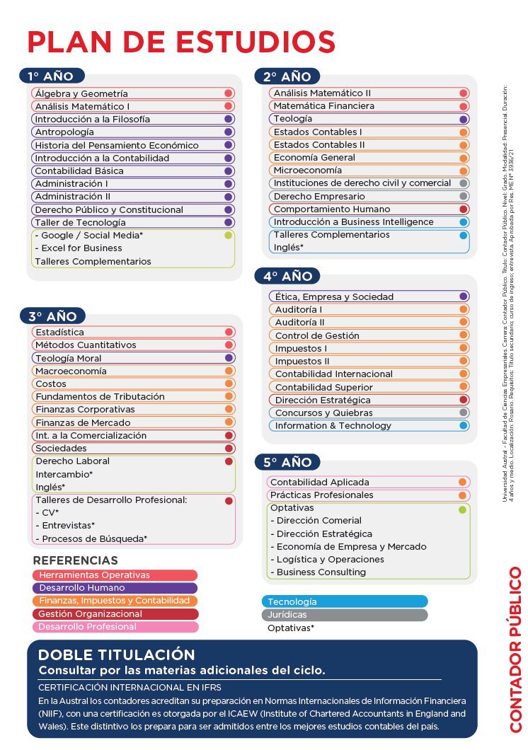 La carrera de Contador Público prepara profesionales para ejercer, de modo independiente, ante terceros: personas, empresas, instituciones públicas y privadas. Asimismo, para desempeñar cargos internos en empresas en las áreas financiera, administrativa-contable, auditoría, tributaria, costos y control. Esta carrera sirve de base para desarrollar tareas de sindicatura en materia concursal, peritajes y otras actuaciones al servicio de la justicia.