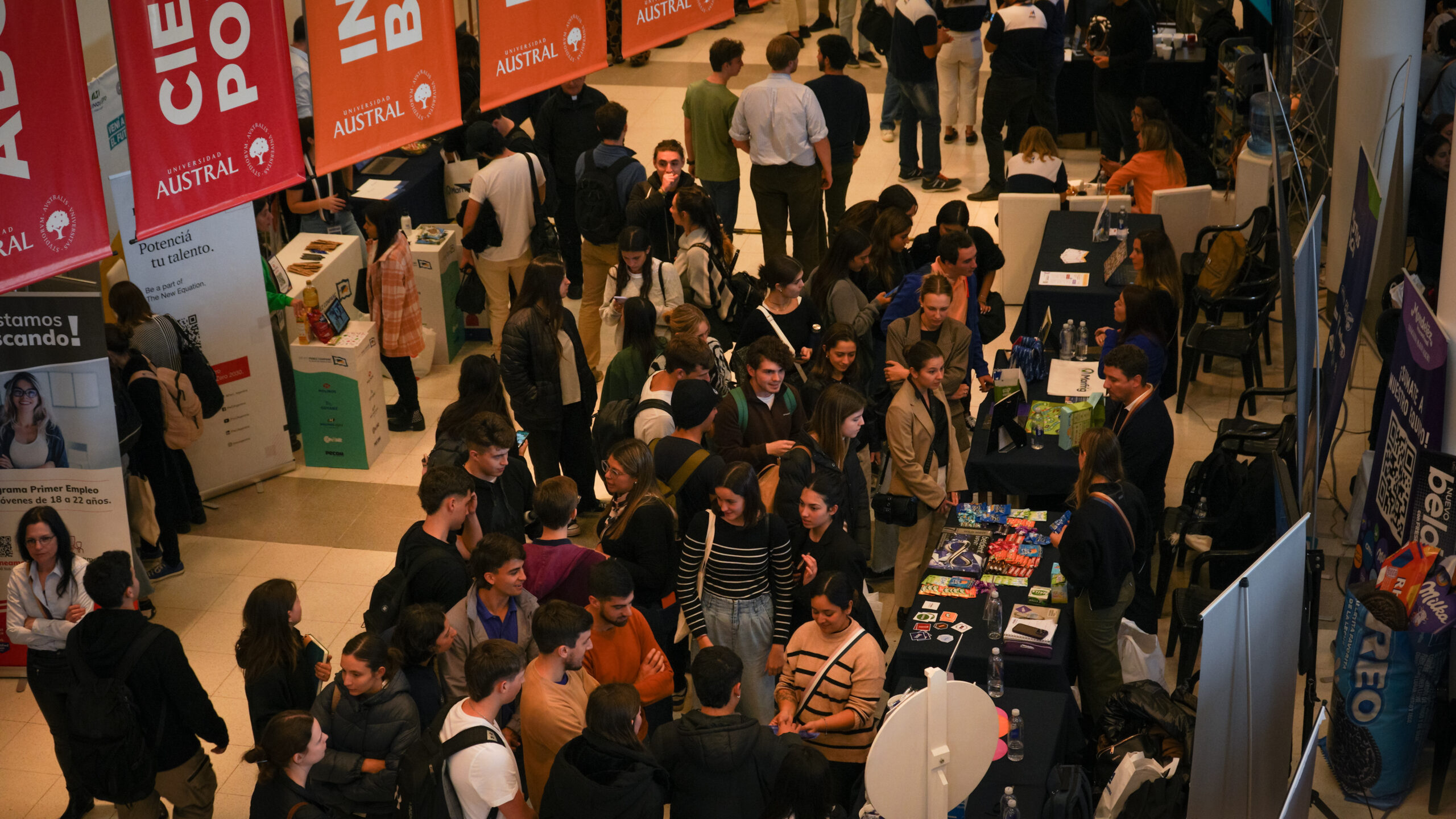 Desde la mañana del jueves 10 y durante toda la jornada, el hall del Edificio Olivo recibió a más de 1.800 jóvenes (100 de ellos provenientes de la Sede Rosario), que interactuaron con reclutadores, hicieron preguntas, jugaron y aprendieron en los distintos stands. Un minigolf, ruletas, juegos interactivos y Bumerizate, el espacio donde podían sacarse una foto profesional, redactar su primer CV o simular entrevistas laborales, fueron algunas de las propuestas que acercaron las compañías. Además, hubo una agenda de charlas pensada para que los alumnos adquirieran herramientas para su futuro laboral: