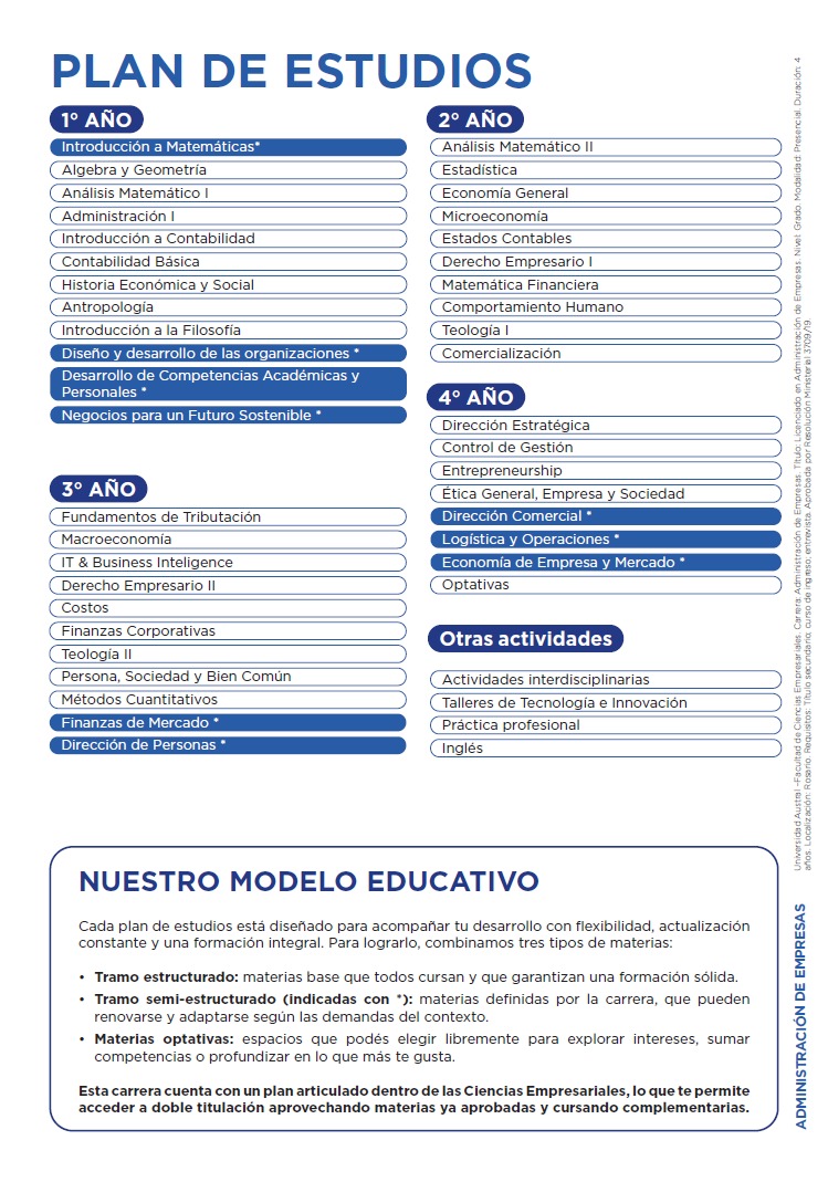 Más allá de la formación clásica en management, finanzas, marketing y estrategia, vas a desarrollar habilidades de liderazgo, innovación y visión global para impulsar empresas en cualquier sector.