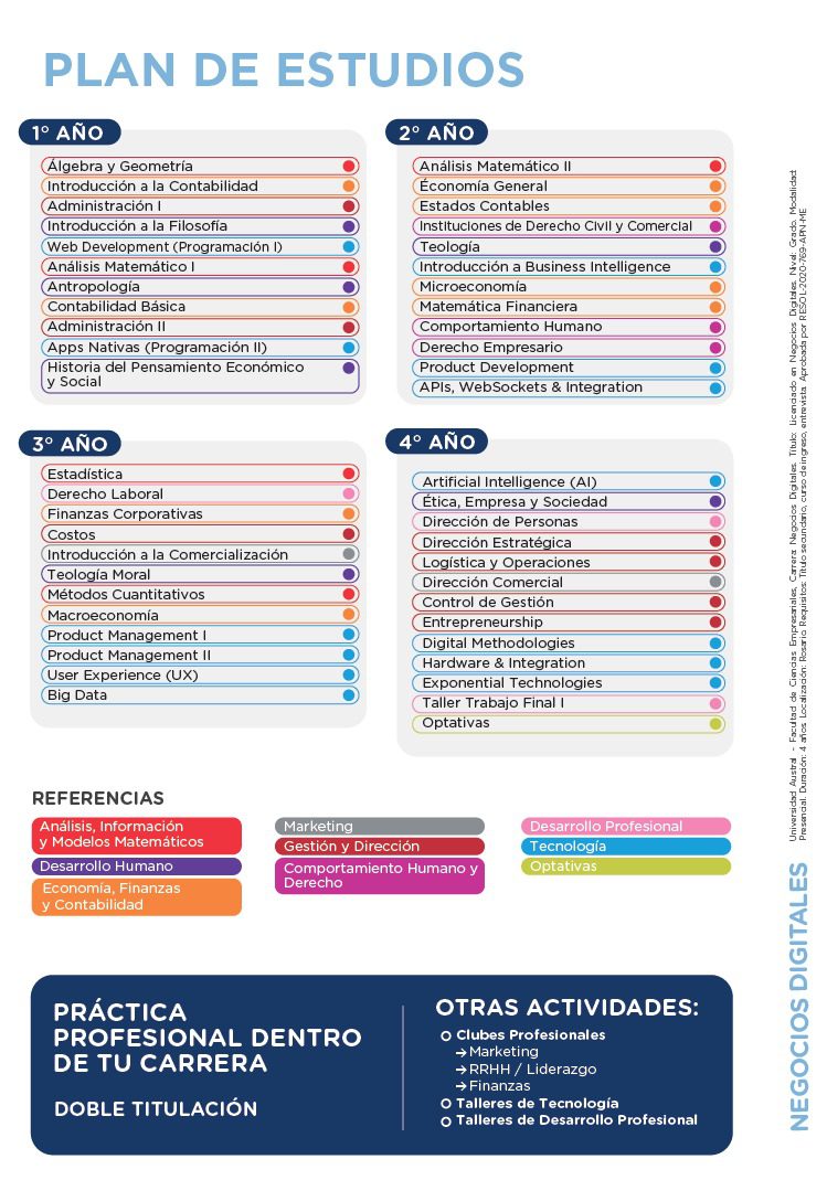 El graduado de la carrera de Licenciatura en Negocios Digitales de la Universidad Austral estará formado para desarrollarse en el mundo de la empresa tanto en relación de dependencia como en forma autónoma, con idoneidad y plena capacidad de integrar sus equipos directivos o de toma de decisiones.