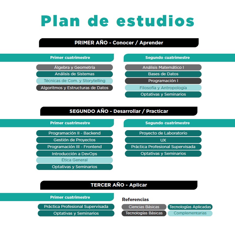 • Ciclo Complementario en Programación: compuesto por 9 materias adicionales, que te permite obtener el título de Técnico Universitario en Programación.