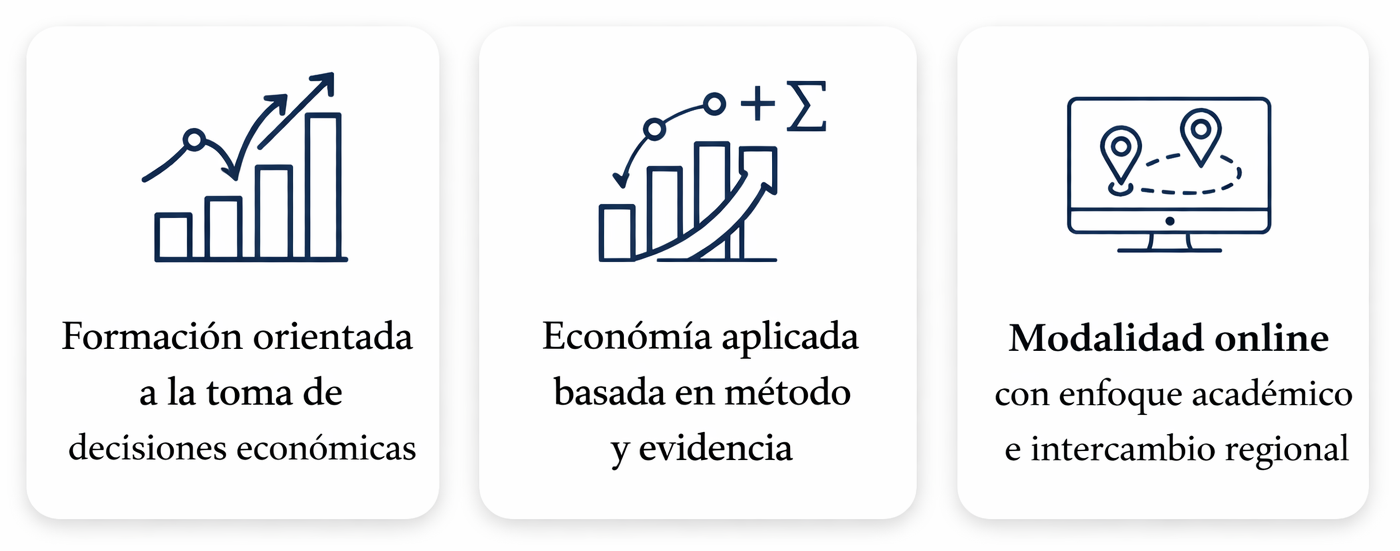 Esta maestría está pensada para quienes buscan fortalecer su capacidad de análisis frente a problemas económicos reales, integrando teoría económica y herramientas cuantitativas desde una mirada aplicada y consistente. Es una formación que prioriza el método, la evidencia y el razonamiento estructurado para abordar contextos atravesados por la incertidumbre y la complejidad.